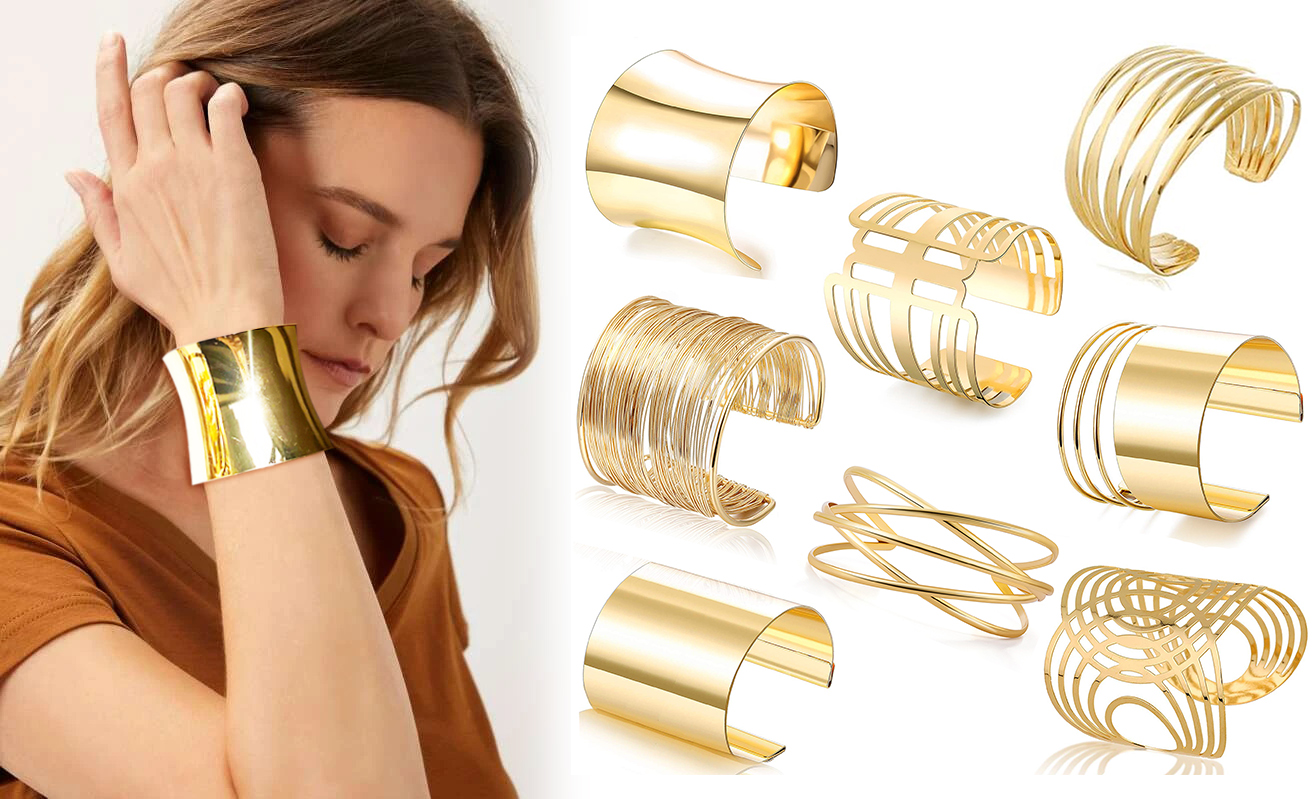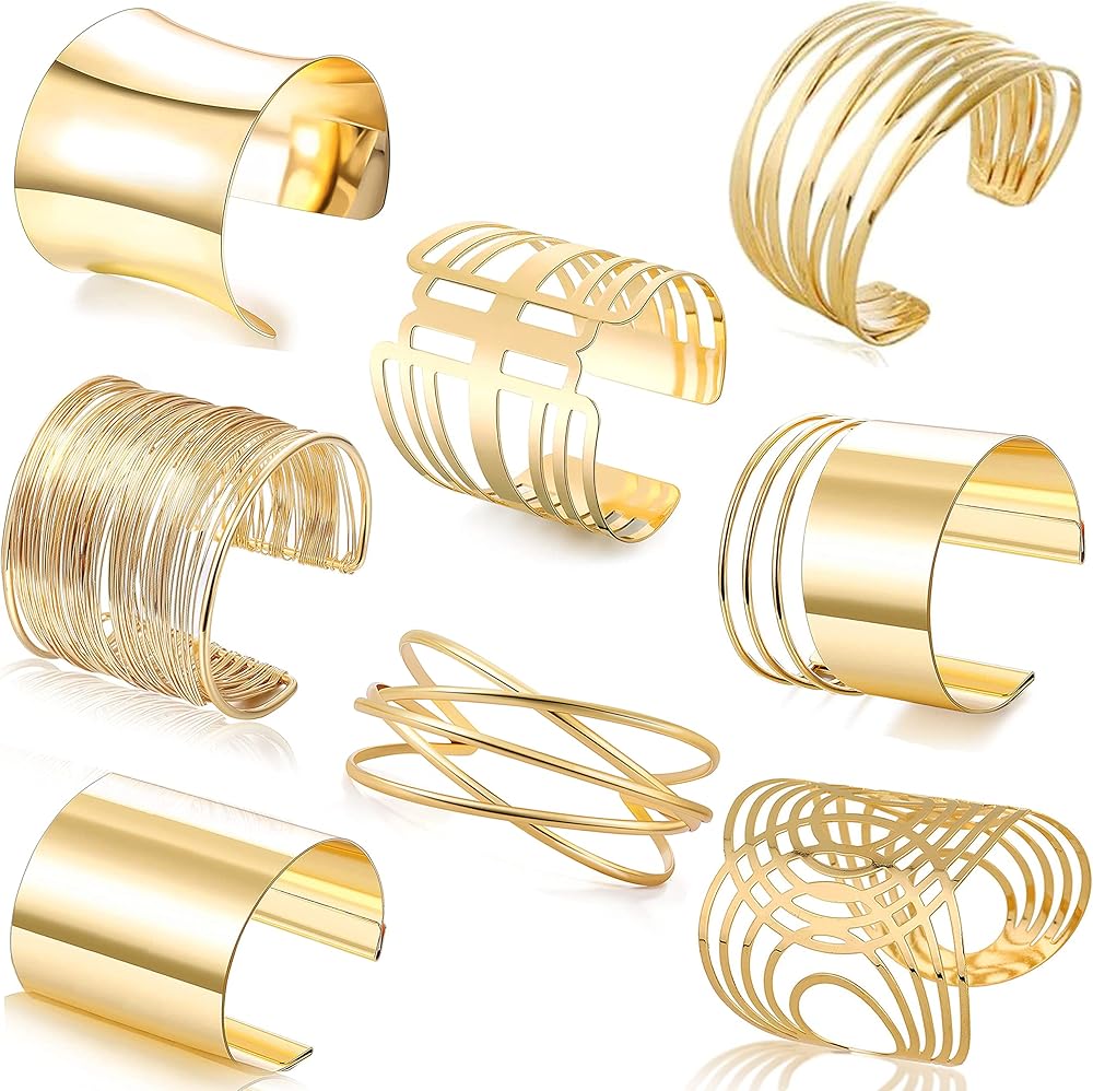 EIELO 8 قطع سوار ذهبي للنساء مفتوح واسع سلك أساور ذهبية سوار معصم قابل للتعديل
