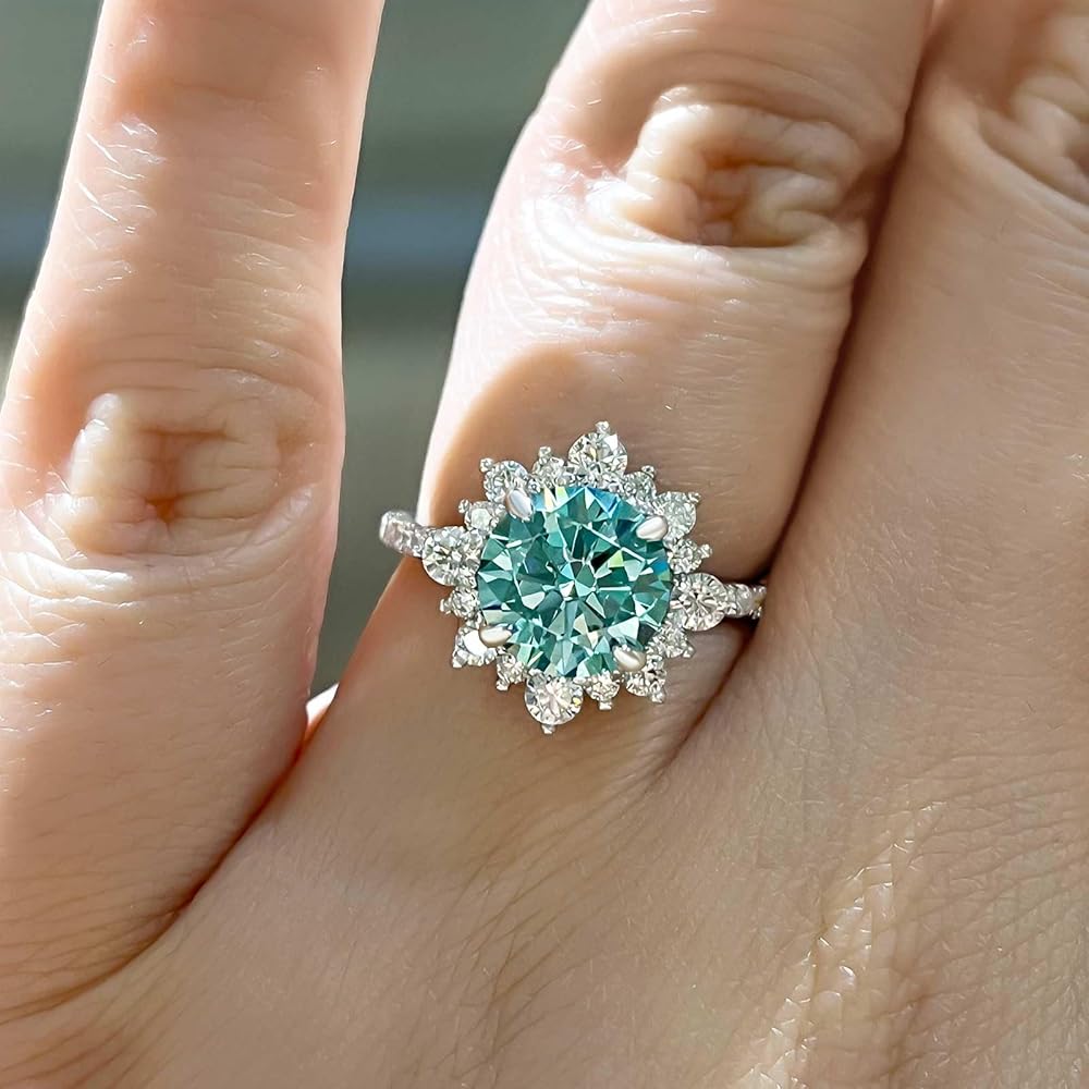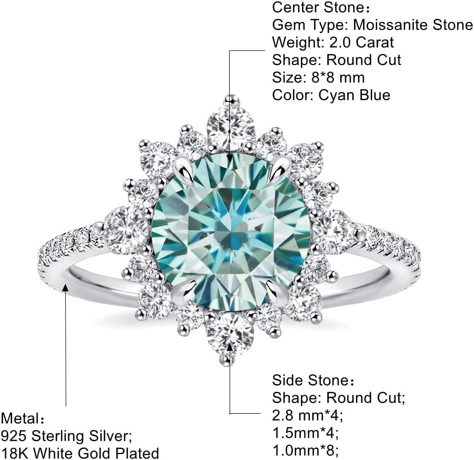 【تصميم مذهل】مصنوع من اللون الأزرق السماوي والمويسانتي الشفاف على يد حرفيين مهرة، خاتم الخطوبة هذا يتألق ويلمع مثل الماس الحقيقي، مما يجعله الخيار الأمثل للارتداء اليومي أو المناسبات الخاصة.