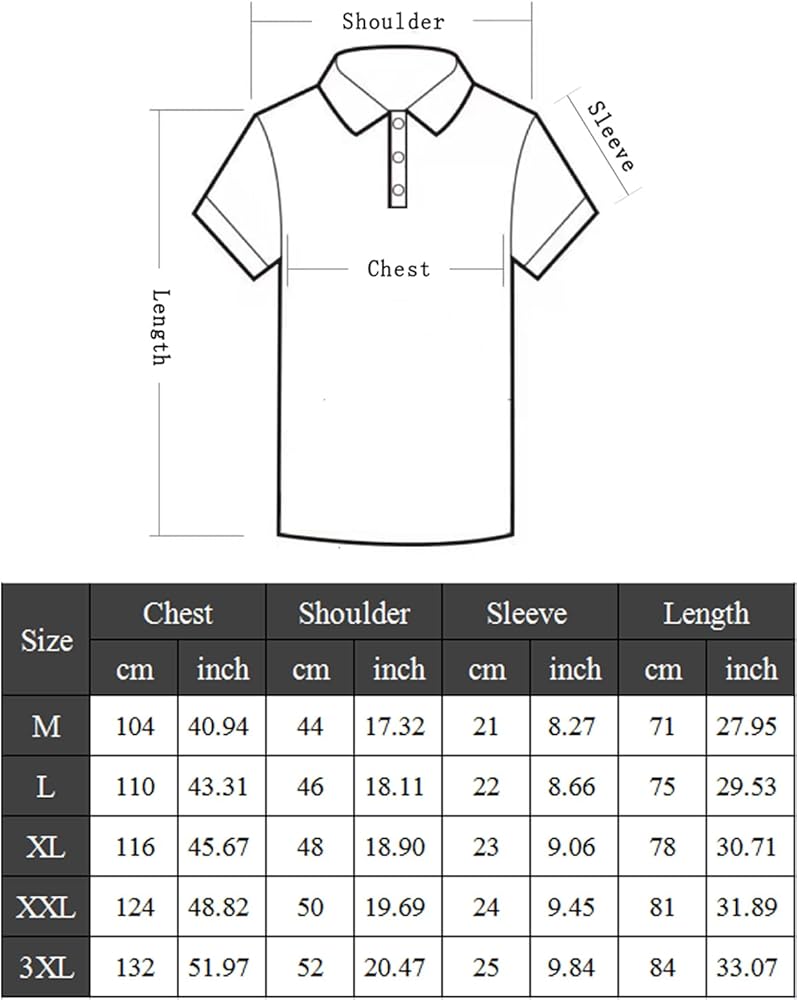 المقاس: بناءً على مواصفات قميص بولو الجولف بالحجم العادي في الولايات المتحدة، فإن المقاس العادي فضفاض وغير مقيد، مما يزيد من الراحة.