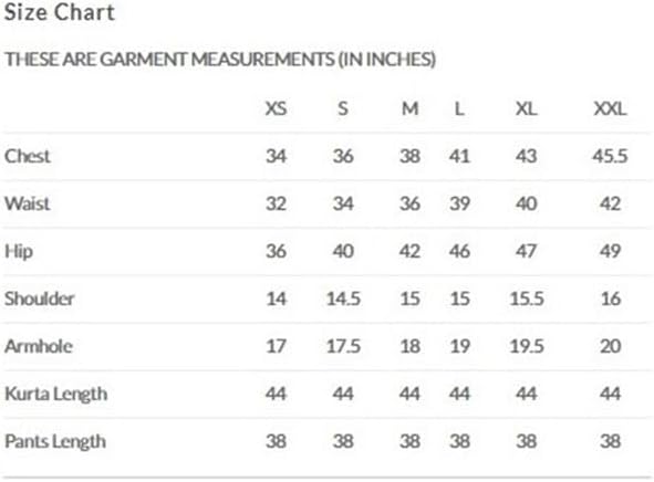 مقاسات المقاس: تم تصميم طقم سراويل كورتا متوسط الحجم ليناسب النساء تمامًا بالمقاسات التالية: الصدر: 38، الخصر: 36، الورك: 42، الكتف: 15، فتحة الذراع: 18، طول كورتا: 44، وطول البنطال: 38 .