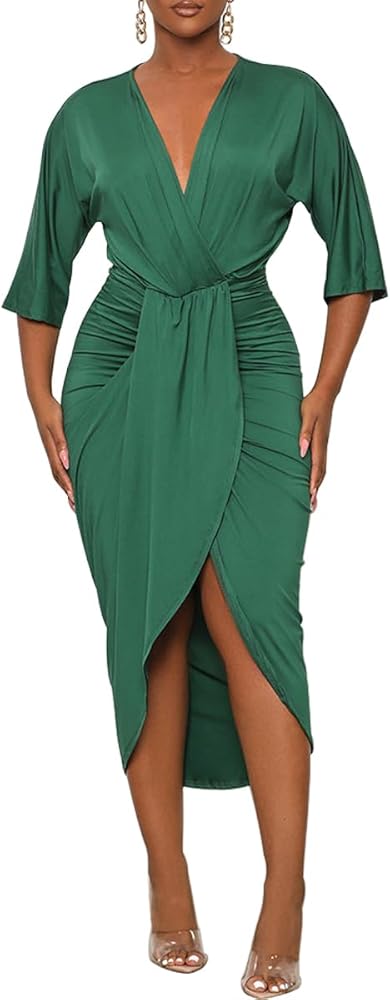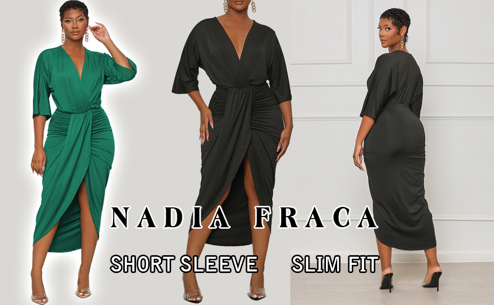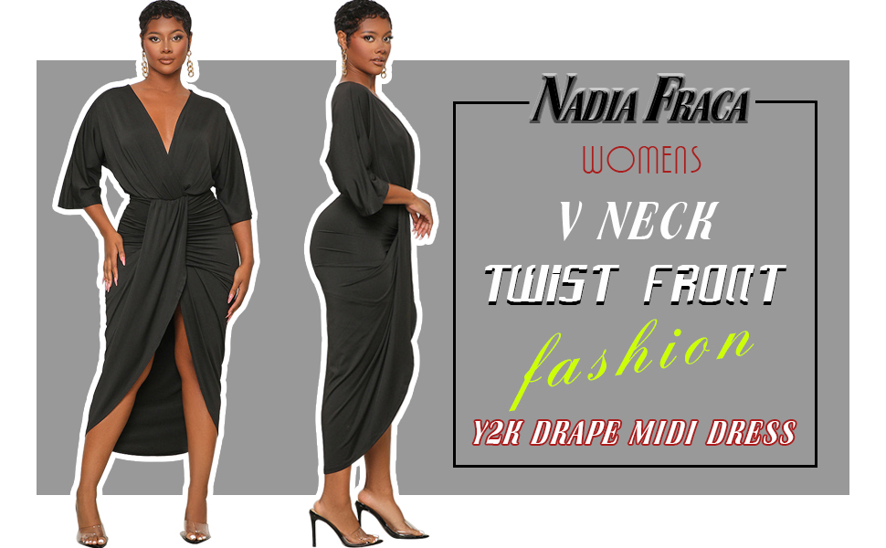 المزايا: كم قصير، تصميم مكشكش، رقبة على شكل حرف V، فستان طويل ملفوف، حاشية مشقوقة، جبهة ملتوية، مقاس نحيف، فستان Y2K متوسط الطول، حاشية غير متماثلة.