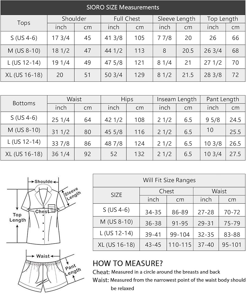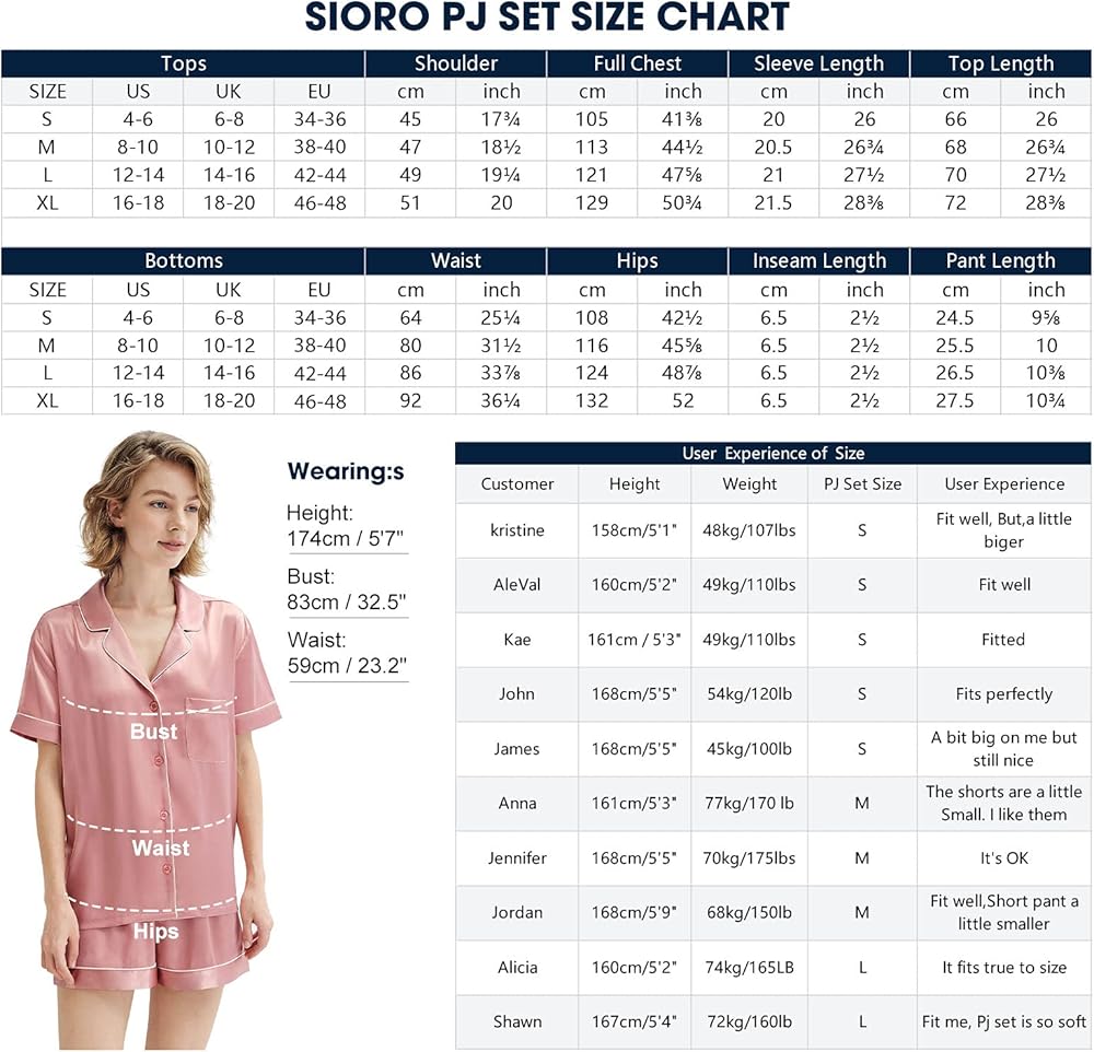 🌈 مقاس مجموعة Satin PJ: يرجى الرجوع إلى جدول مقاسات SIORO في منطقة الصورة أو قم بالتمرير لأسفل إلى وصف المنتج. طقم بيجامة قصيرة من الساتان الحريري - صغير (الولايات المتحدة 4-6)؛ متوسط (الولايات المتحدة 8-10)؛ كبير (الولايات المتحدة 12-14)؛ كبير جدًا (الولايات المتحدة 16-18).