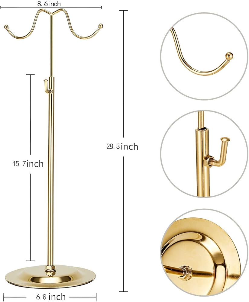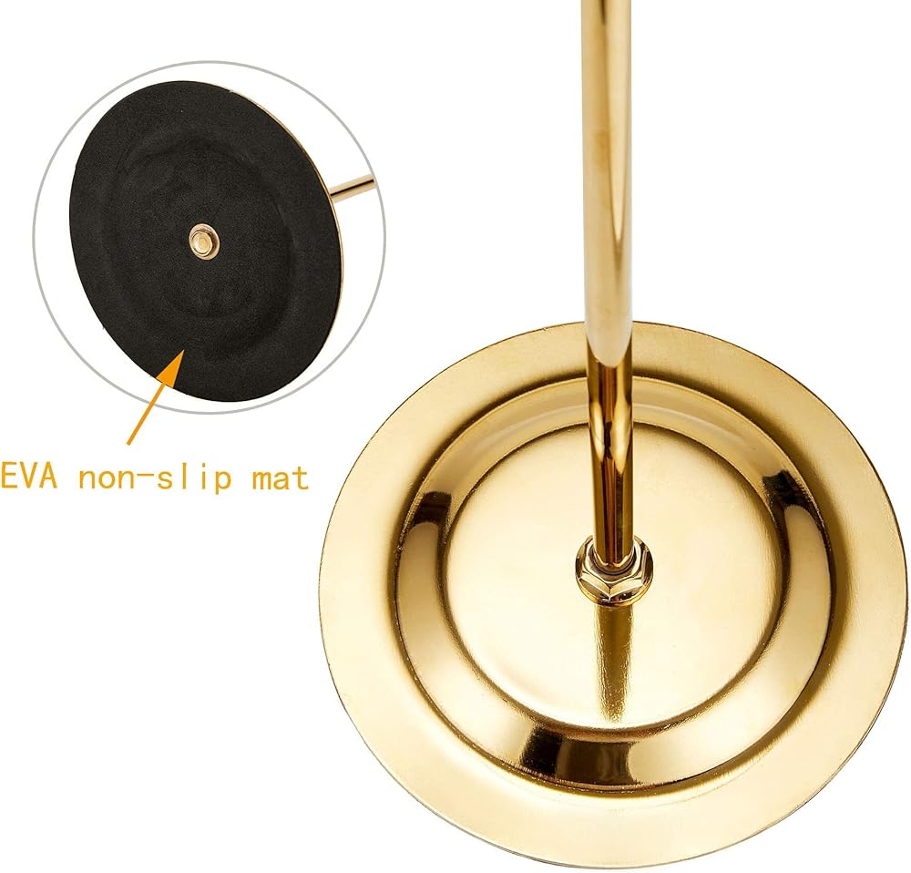 [STABLE BASE AND EXCELLENT DESIGN]——The height can be adjusted from 15.7 inches to 28.3 inches, and the diameter of the base plate is 6.8 inches. The body is made of durable polished gold stainless steel , which has enough weight and solid support.