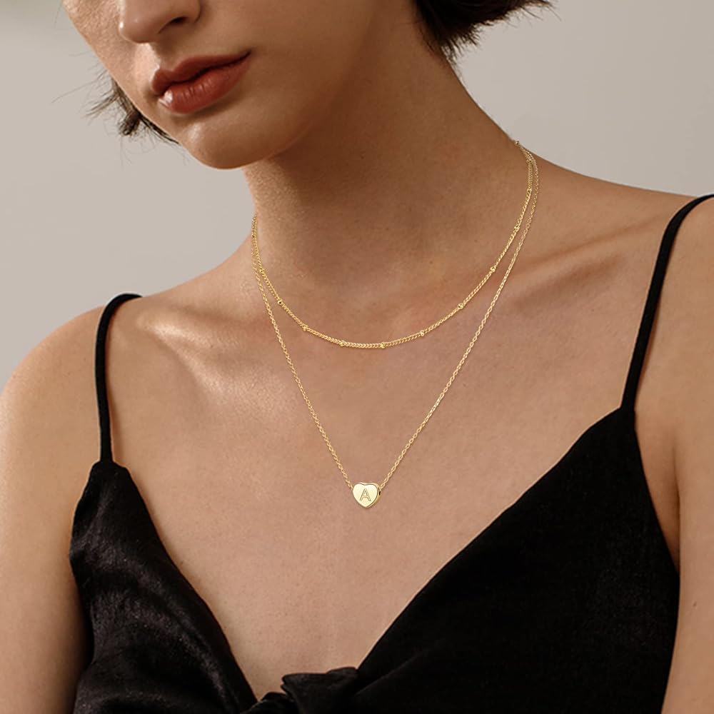 جودة عالية وحرفية رائعة: القلادة الأولية على شكل قلب مصنوعة من سلسلة كابل عالية الجودة مطلية بالذهب عيار 14 قيراط ومقطعة بالألماس. خالية من النيكل والرصاص بنسبة 100%، واجتازت اختبارات صارمة ضد الحساسية. هذه المواد الآمنة ليست ضارة بالصحة ولن تجعل بشرتك خضراء أو تسبب الحكة. قلادة على شكل قلب مصنوعة يدويًا عالية الجودة، ولمسة نهائية عالية اللمعان ولا تبهت، وتظل مشرقة كالجديدة لفترة طويلة.