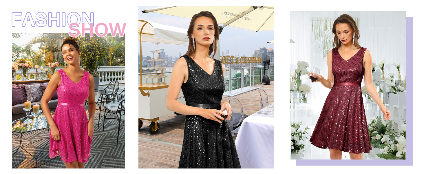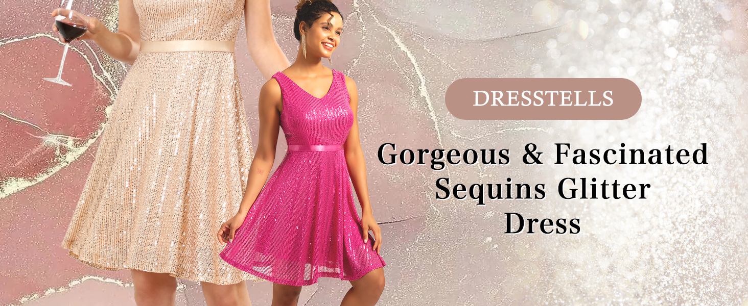 طراز كلاسيكي وعصري وأنيق، فستان لامع سيجعلك أبرز ما في ليلة الحفلة. فستان الحفلات بالترتر، مثالي ليتماشى مع حقائب اليد والأقراط والقلائد المتلألئة والكعب العالي!
