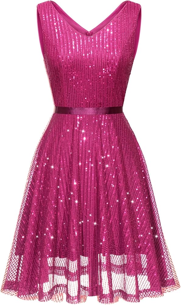 مريح في الارتداء: مادة صديقة للبشرة، حزام كتف عريض وتصميم بدون أكمام، وترتر لامع يصل إلى الركبة ونمط كلاسيكي على شكل حرف A. كما أن تصميم السحاب غير المرئي الموجود على الظهر مريح جدًا في الارتداء والخلع.