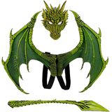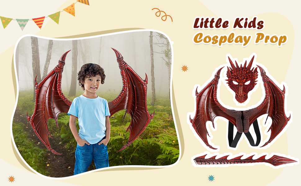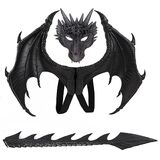 • مجموعة أزياء الهالوين التنكرية للأطفال بأجنحة وذيل وقناع تنين