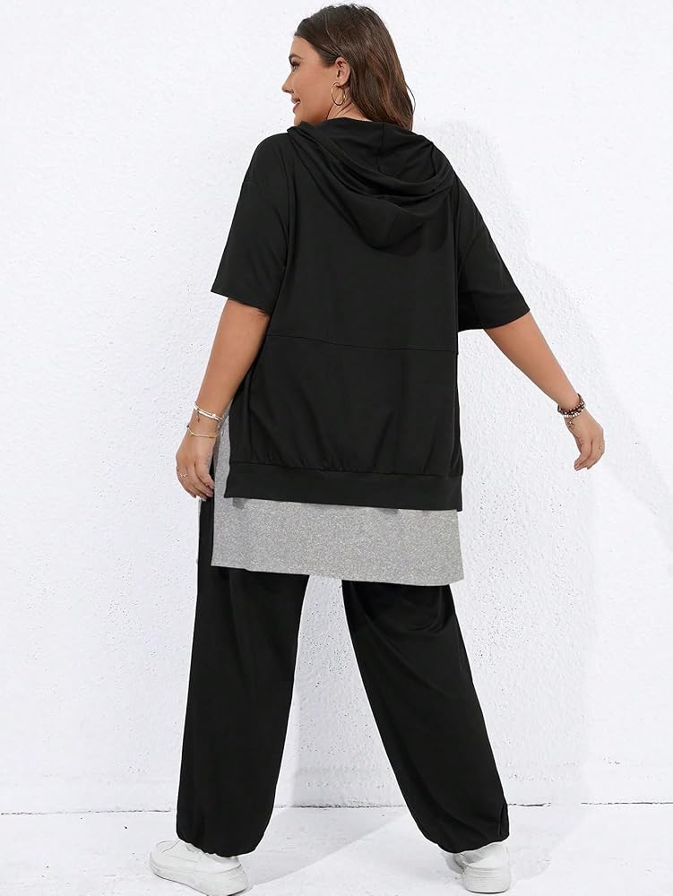 ملابس WDIRARA النسائية المكونة من قطعتين، ذات قلنسوة وبنطلون رياضي بكتف منسدل وأحرف ملونة