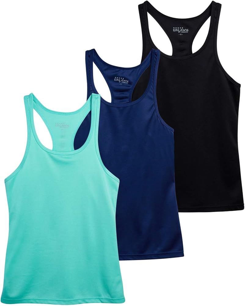 GALAXY مرخصة رسميًا من HARVIC: قمصان بدون أكمام للسيدات من Racerback ماصة للرطوبة وجافة للجري وصالة الألعاب الرياضية واللياقة البدنية؛ لتحديك لاحتضان انعطافات الحياة