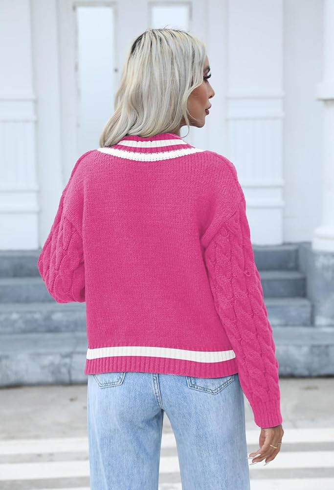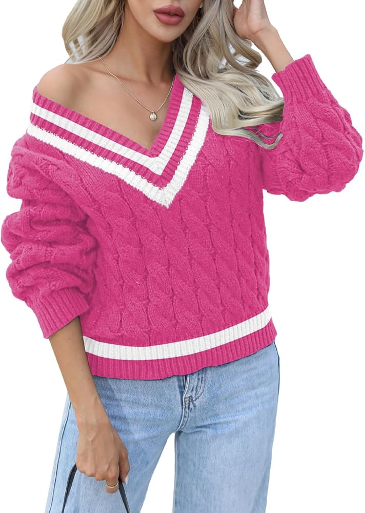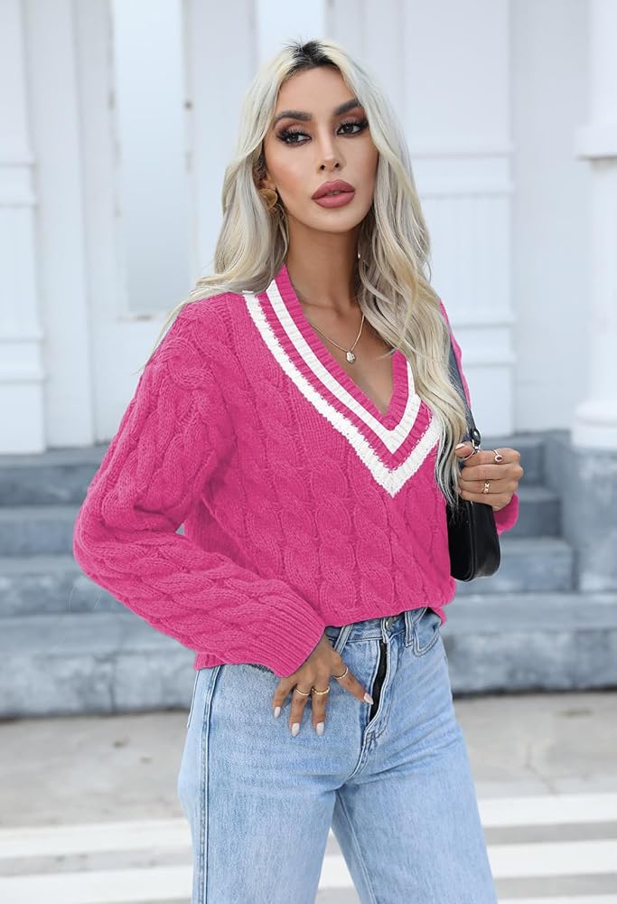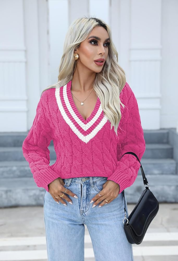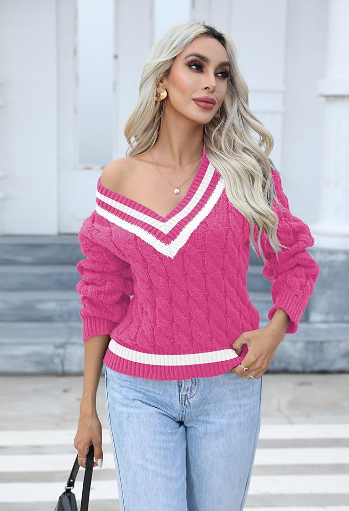 سترة نسائية متماسكة برقبة على شكل حرف V لخريف وشتاء 2023، كنزة علوية عصرية