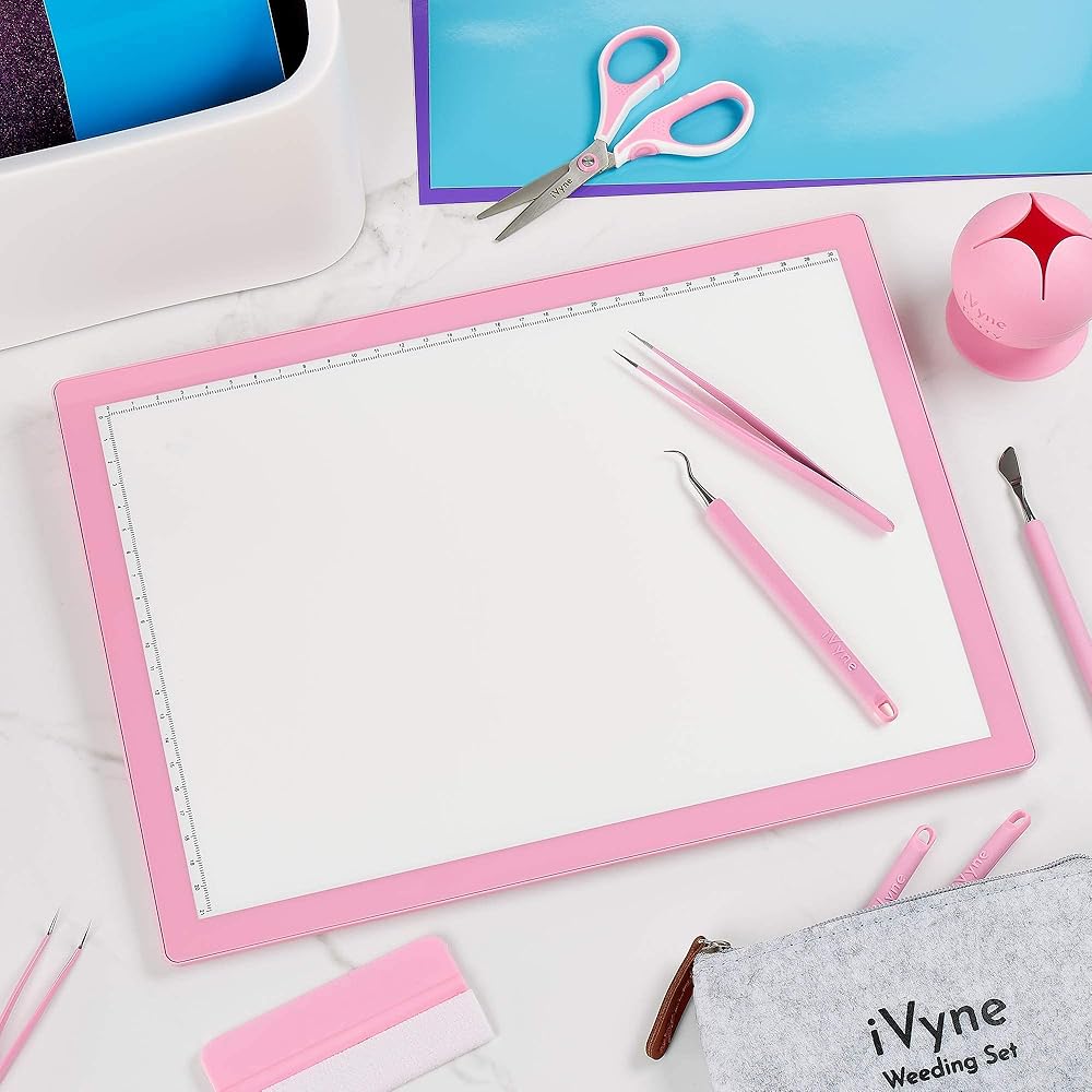 وسادة إضاءة iVyne قابلة لإعادة الشحن: تصميمات خفيفة الوزن ورفيعة للغاية ستجعل لوحة الإضاءة سهلة الحمل وسهلة الحمل. يتضمن المقياس - يجعل وضع الورق أو الفينيل سهلاً ودقيقًا ككل سيجعل عملك الفني أكثر دقة. 5 أوضاع سطوع - هناك 5 أوضاع سطوع لمزيد من التنوع، قم بتغيير الإضاءة وفقًا لاحتياجاتك. حماية العين - لساعات طويلة من عمل الفنانين المحترفين لن يكون هناك إجهاد للعين أو التهاب في العين. بطارية قابلة لإعادة الشحن - تعمل على بطارية ليثيوم قابلة لإعادة الشحن داخل لوحة الإضاءة، بحيث يمكنك العمل بدون حبال في أي مكان وفي أي وقت لمدة تصل إلى 6 ساعات! -يتم تضمين كابل USB لشحن اللوحة. مجموعة إزالة الأعشاب الضارة من السيليكون ذات قبضة ناعمة من iVyne: (1X) ملاقط، (1X) أدوات إزالة الأعشاب، في علبة بلاستيكية مضغوطة. تم تصميم قبضة السيليكون الناعمة لتكون سهلة على الأصابع لمساعدة الأشخاص الذين يعانون من آلام المفاصل أو التهاب المفاصل. سيتخلص الطرف الحاد والدقيق من أصغر الجروح، ويمكن قطعها بسهولة من خلال الفينيل أو الورق مثل المقص. يعد الالتقاط والخطاف ذو الزوايا الدقيقة مثاليًا لسحب القطع السلبية الصغيرة من صورة المخزون أو لإزالة قطع الفينيل السلبية. يمكن إزالة الأجزاء الحساسة من صورتك باستخدام الملقط الحاد ذو تصميم الزوايا. جميع أدوات إزالة الأعشاب الضارة معبأة في علبة بلاستيكية صغيرة ممتازة للحفاظ على أدواتك في حالة ممتازة ومنظمة بشكل صحيح. جامع قصاصات شفط الأعشاب من الفينيل من iVyne Berry: حافظ على نظافة مساحة العمل الخاصة بك - قم بسهولة بجمع جميع قصاصات الفينيل لإزالة الأعشاب الضارة من الفينيل الخاص بك وقم بخطافها في سلة المهملات الصغيرة المريحة والصديقة للبيئة المصنوعة من السيليكون الآمن غذائيًا. املأ التوت بالفينيل، وحافظ على يديك ومكتبك وأرضيتك خالية من القصاصات لتوفير ساعات من التقاط الفينيل من الأرض. قم بإزالة كرة نفايات الفينيل اللاصقة بسهولة من كوب إزالة الأعشاب غير اللاصق، حيث لا يلتصق الفينيل بهذا السيليكون الآمن غذائيًا. شفط لمعظم الأسطح! *جميع منتجات iVyne تتمتع بضمان مدى الحياة، أو استعادة أموالك!