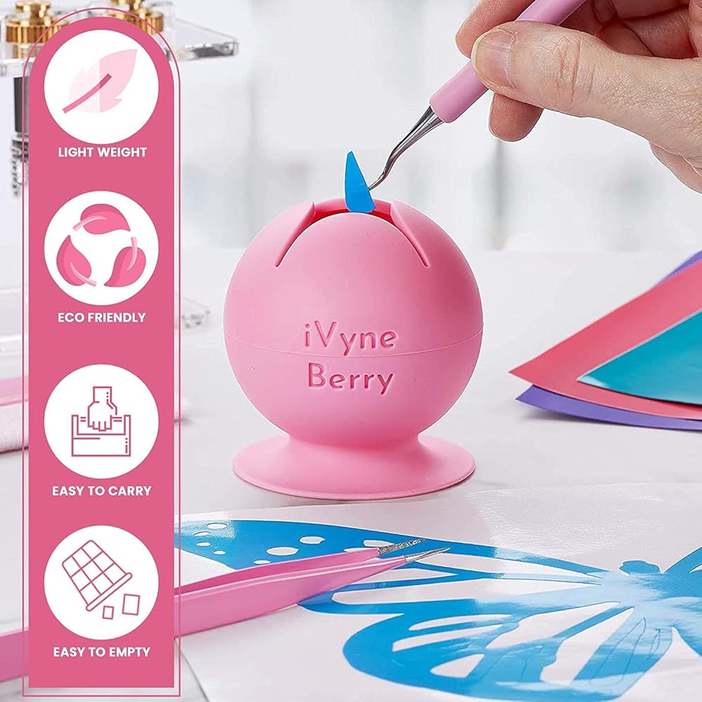 [تصميم في انتظار الحصول على براءة اختراع] يتضمن تصميم التوت الذي في انتظار الحصول على براءة اختراع فتحة على شكل نجمة تجعل عملية إزالة الأعشاب الضارة سهلة وممتعة للحرفيين. تخلص بسهولة من خردة الفينيل الموجودة في التوت، بمساعدة الشقوق. قم بشفط التوت على أي سطح تقريبًا! سيبقى ممتصًا لساعات لمساعدتك في أصعب مشاريع فينيل إزالة الأعشاب الضارة من Cricut.
