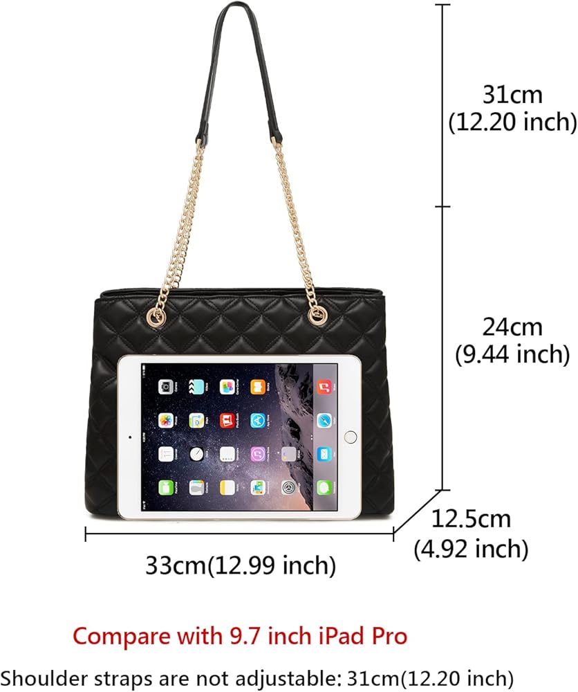 ♥الأبعاد - تقريبًا. الطول 13 × الارتفاع 9.44 × العرض 4.92 بوصة (33 سم × 24 سم × 12.5 سم)، تزن حوالي 1.76 رطل (0.8 كجم) عندما تكون فارغة، مقابض مزدوجة مع انخفاض 12.2 بوصة (31 سم)، حقائب اليد النسائية الكبيرة المبطنة مثالية للمناسبات غير الرسمية/ عمل.