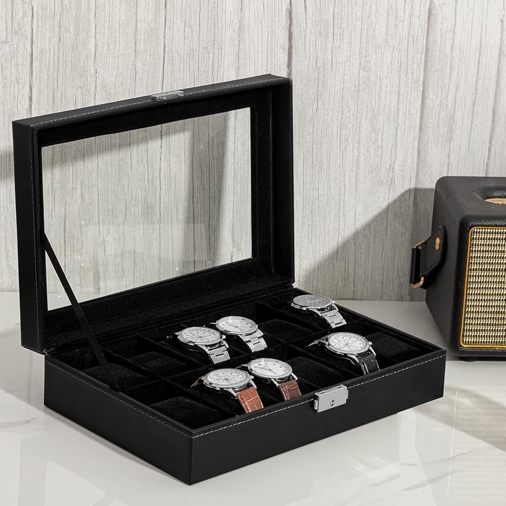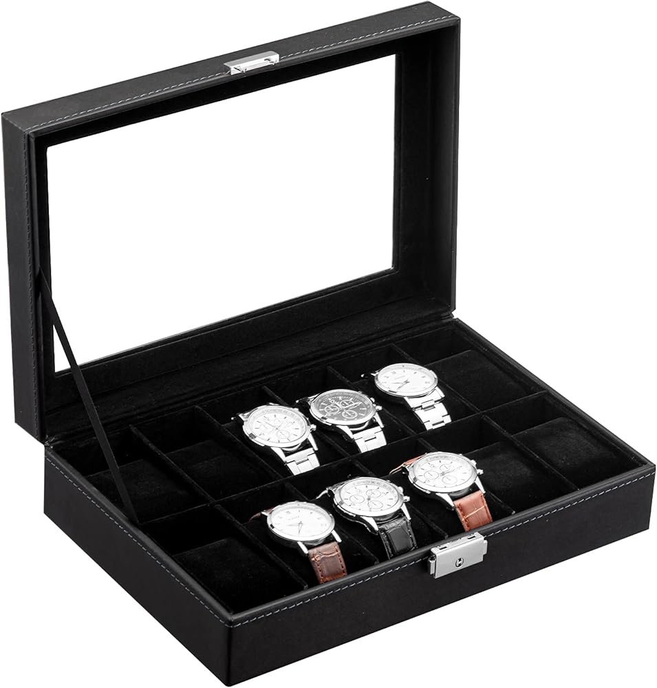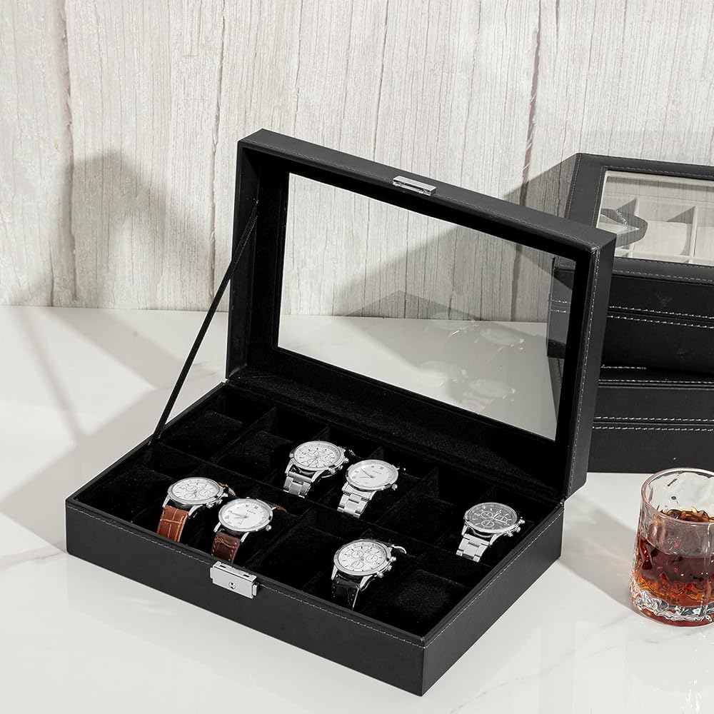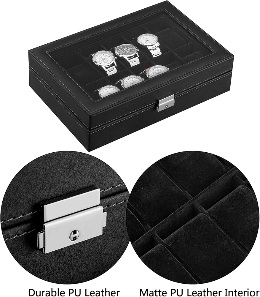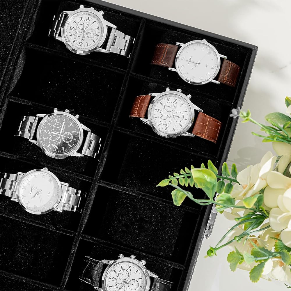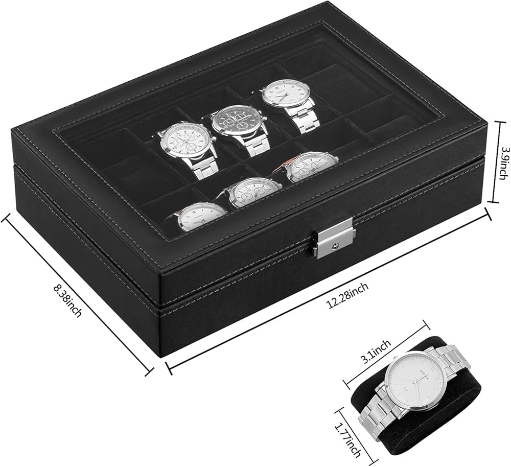يشتمل على: منظم الساعات الرجالي هذا رائع ورائع وراقي. وهي سهلة التنظيف. كل ما عليك فعله هو مسح منظم علبة العرض بقطعة قماش. يشتمل منظم صندوق الساعة هذا على ست وسائد لحمل ساعتك بشكل أنيق. بفضل تصميمها الخاص المائل بزاوية 45 درجة، يمكن إخراج الساعة ووضعها بسهولة شديدة.