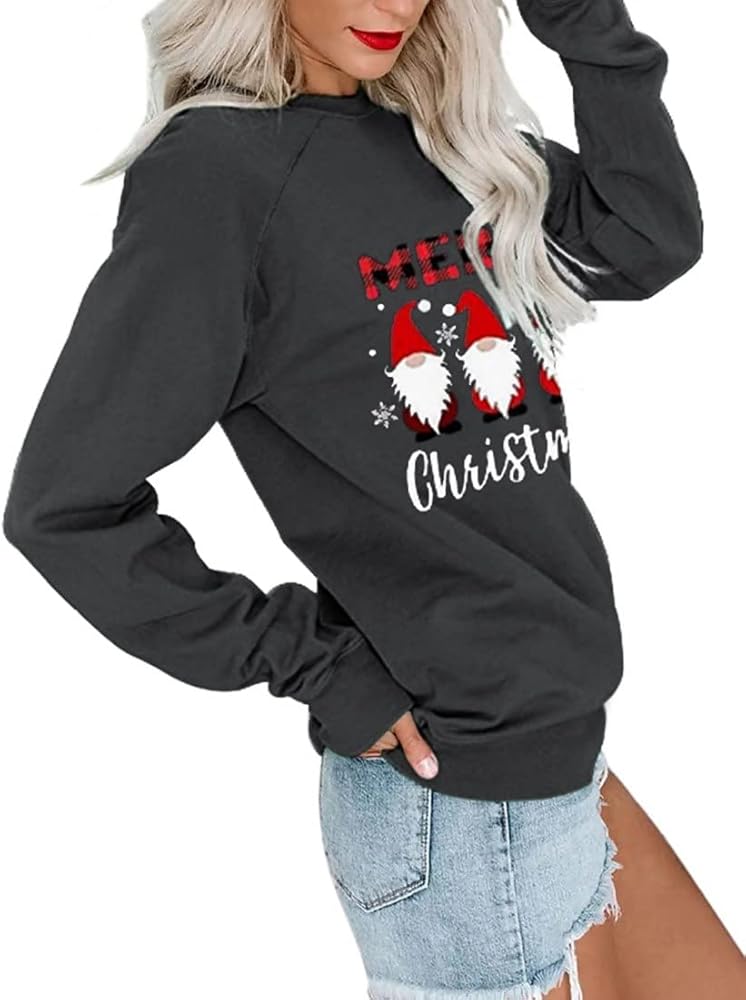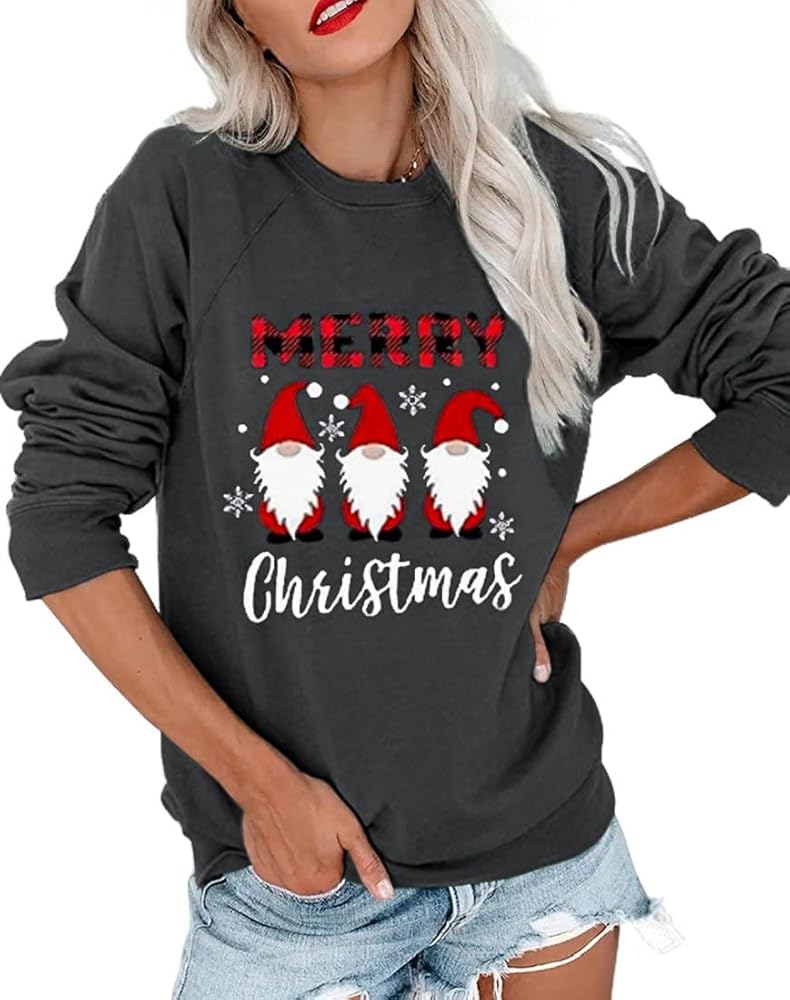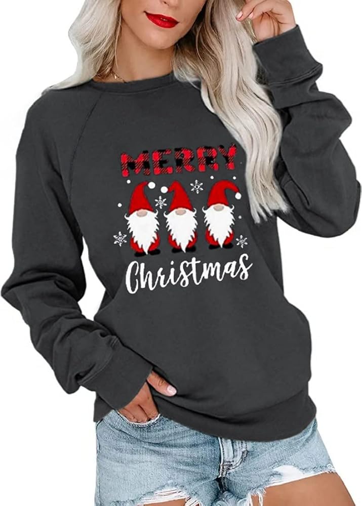 قمصان عيد الميلاد النسائية طويلة الأكمام بياقة دائرية، سترة علوية مضحكة غير رسمية لعيد الميلاد 2023
