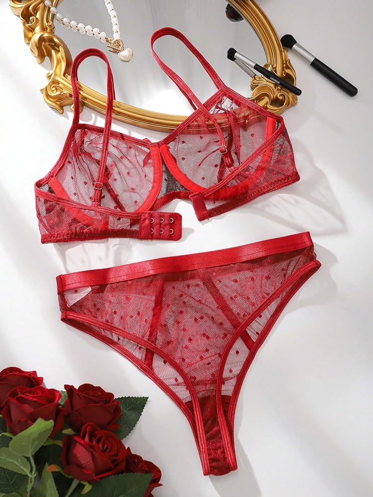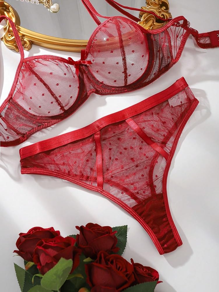 - مجموعة الملابس الداخلية المصنوعة من الدانتيل الزهري مصنوعة من دانتيل كروشيه ناعم مع حمالة صدر وثونغ من الدانتيل.