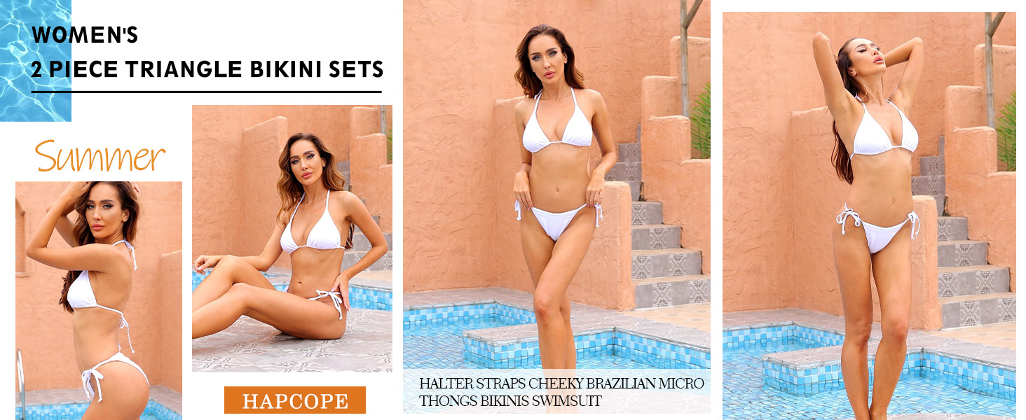 بدلة سباحة نسائية من HACOPE مكونة من قطعتين، طقم بيكيني مثلث بخيط رسن