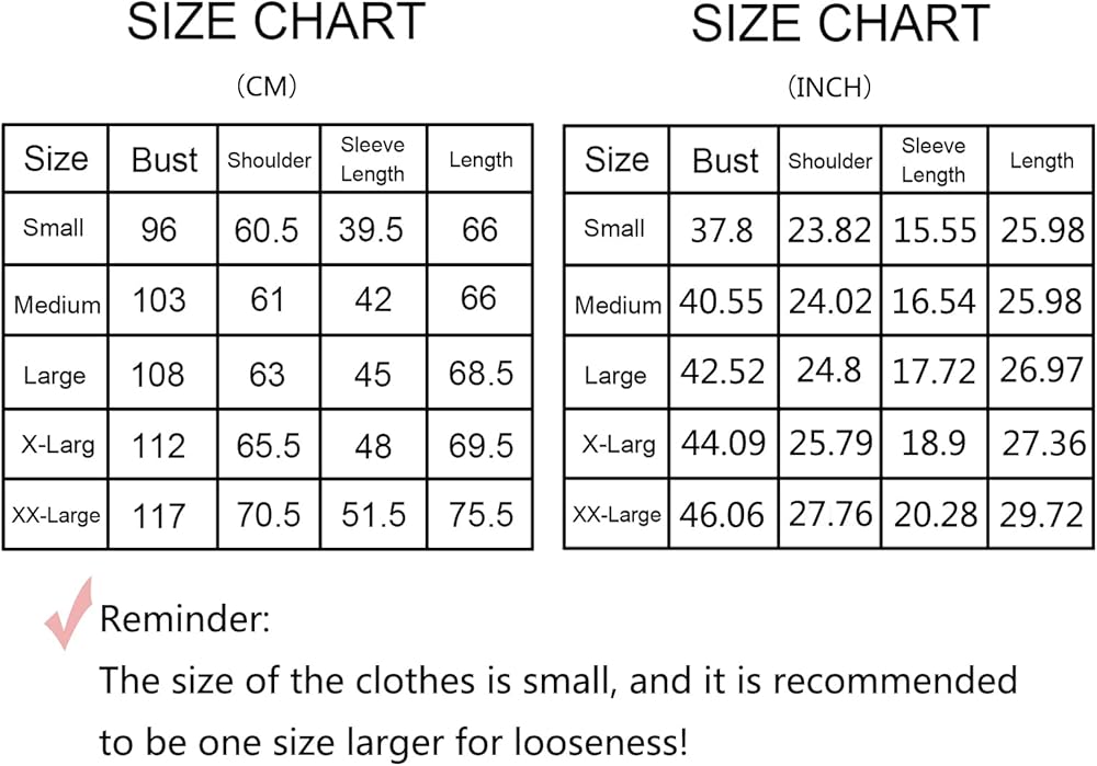 العناية بالملابس: غسيل يدوي أو في الغسالة بماء بارد/تعليق أو تعليق ليجف/لا تستخدم مبيضات/لا تستخدم التنظيف الجاف. يرجى الرجوع إلى جدول المقاسات الخاص بنا قبل الطلب. إذا كانت لديك أي أسئلة أخرى، يرجى الاتصال بنا بحرية! (ليس جدول مقاسات أمازون)