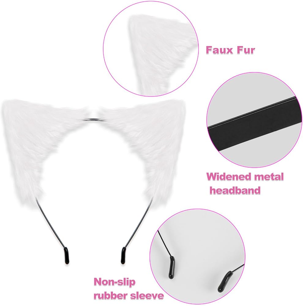 راحة جيدة: الأذن ذات الفراء الأبيض محمية بغطاء مطاطي في النهاية، مما يزيد من الراحة بشكل فعال ولا يضر تصفيفة الشعر. تجعلك تبرز في الحفلة.