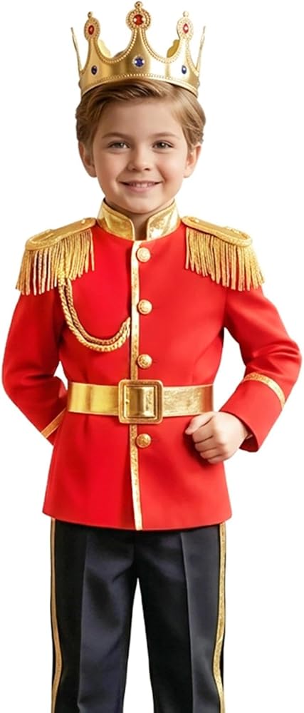 • زي الأمير للأولاد: تشتمل مجموعة ملابس الأمير الساحرة هذه على تاج ملكي، وقميص أميري، وبنطلون، وحزام، مما يوفر كل ما يحتاجه طفلك ليصبح أميرًا مهيبًا.