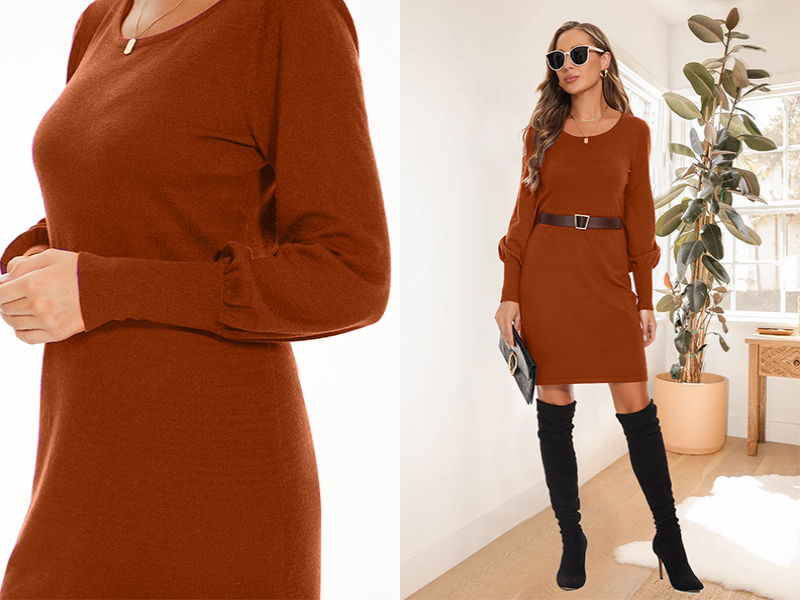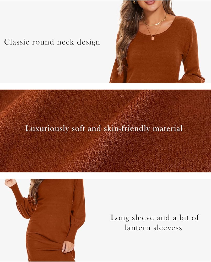 • المزايا: فستان سترة بأكمام طويلة مع لون ثابت، تصميم رقبة مستديرة بطول متوسط ​​سيظهر سلوكك الأنيق. سترة صوفية فضفاضة ومريحة.