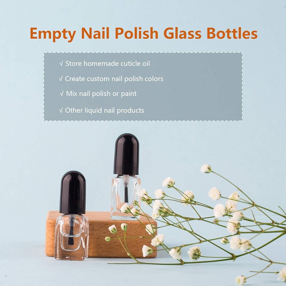 زجاجات طلاء الأظافر الزجاجية الفارغة - تأتي هذه الزجاجات الفارغة مع فرشاة ناعمة وسلسة، سهلة الاستخدام؛ تسهل الزجاجات الزجاجية الشفافة رؤية الحجم المتبقي من مستحضرات التجميل