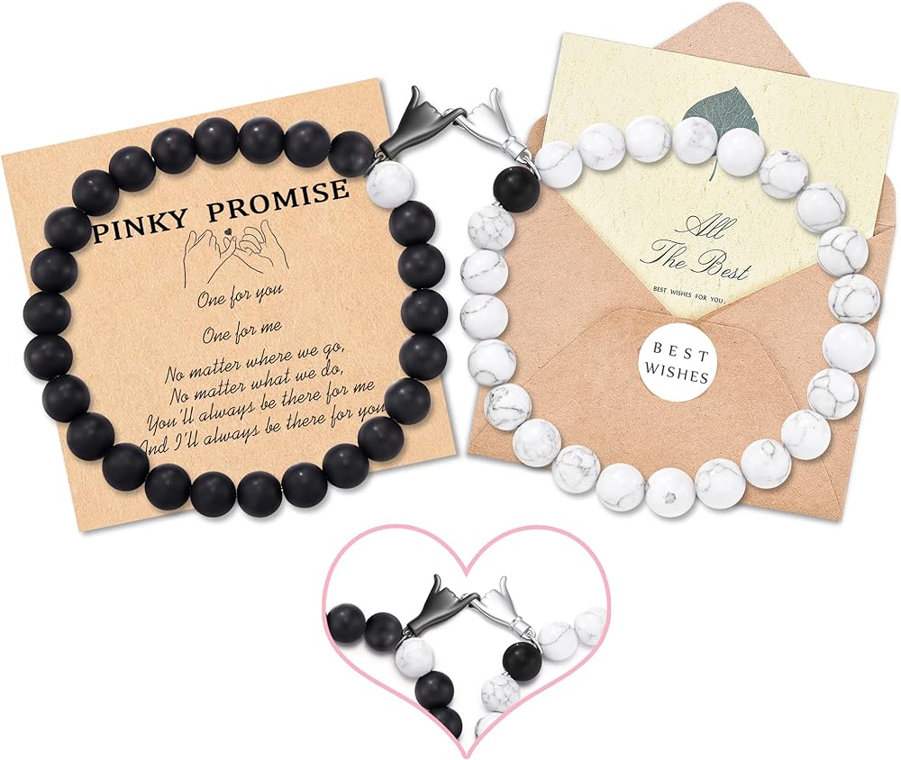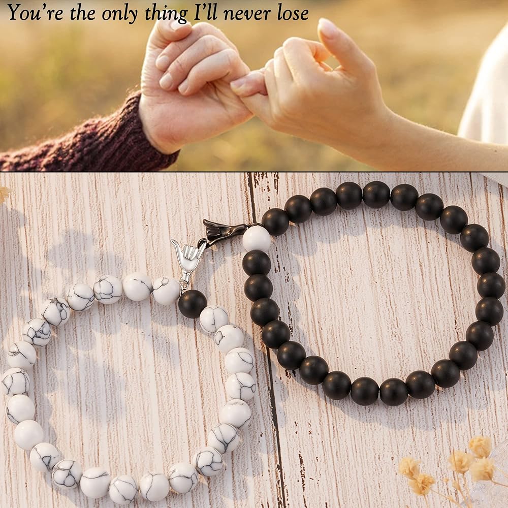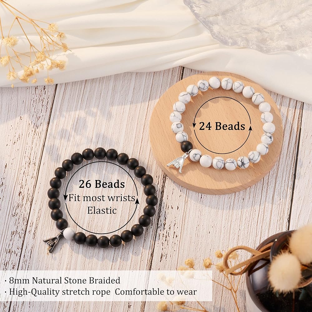 【أساور للأزواج】- أساور العلاقة هذه مصنوعة من خرز حجر طبيعي مقاس 8 مم، وخيط نايلون عالي الجودة والفولاذ المقاوم للصدأ. سوار من الحبال المضفرة المتينة قابل للتعديل (7 إلى 11 بوصة)، وهو مناسب لمعظم المعصمين، وليس من السهل كسره. جرس قوي محسّن، لا داعي للقلق بشأن سقوطه! يمكنك ارتدائه أثناء السباحة أو الاستحمام كما أنه مناسب للبشرة الحساسة