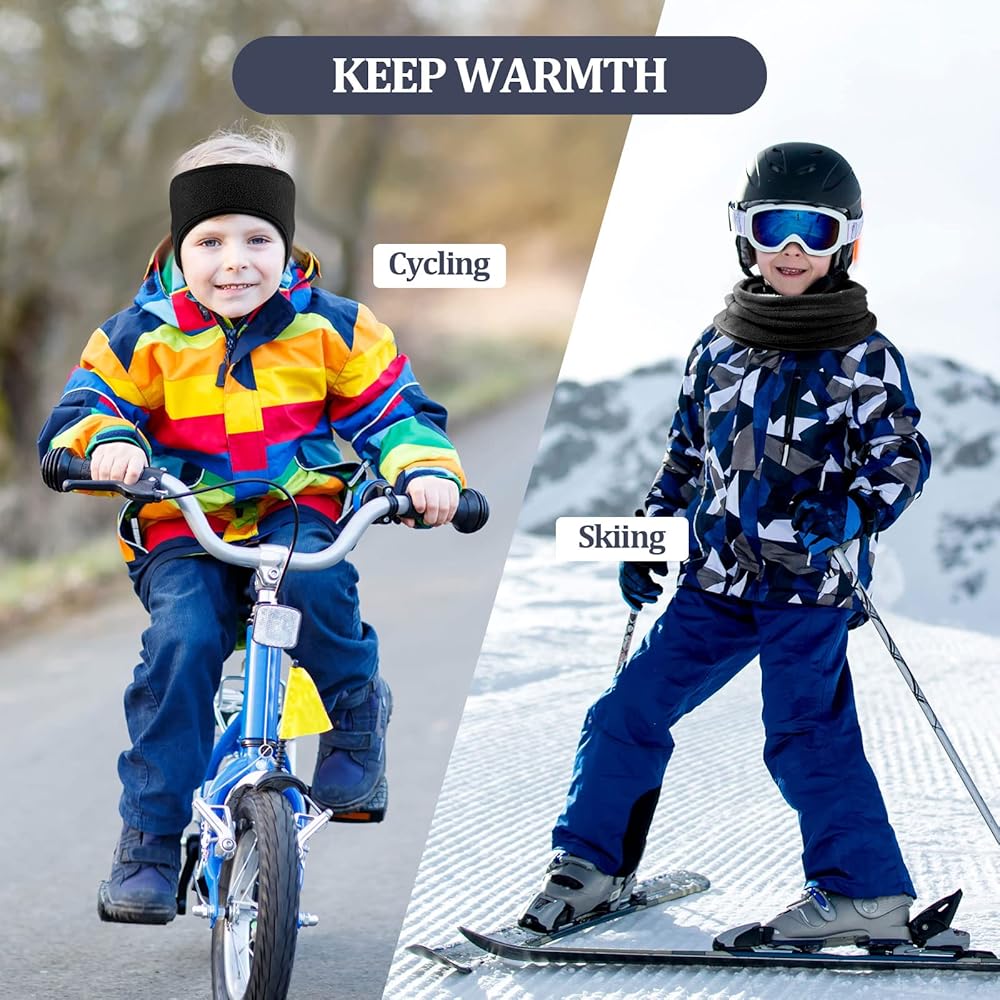 6 قطع من عصابة رأس لتدفئة الأذن من الصوف للأطفال مع مجموعة واقي للرقبة وغطاء رأس للشتاء ووشاح للرقبة للأطفال وركوب الدراجات والتزلج والرياضة الخارجية (أسود؟