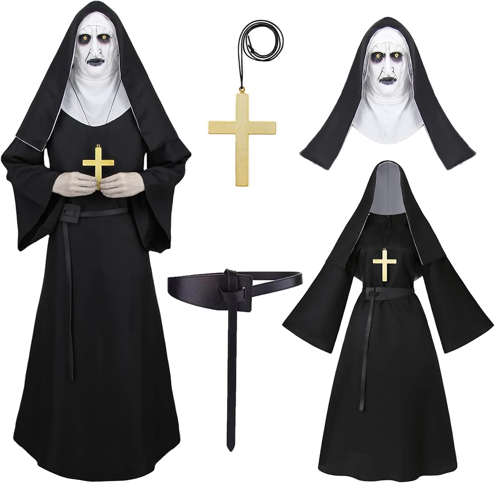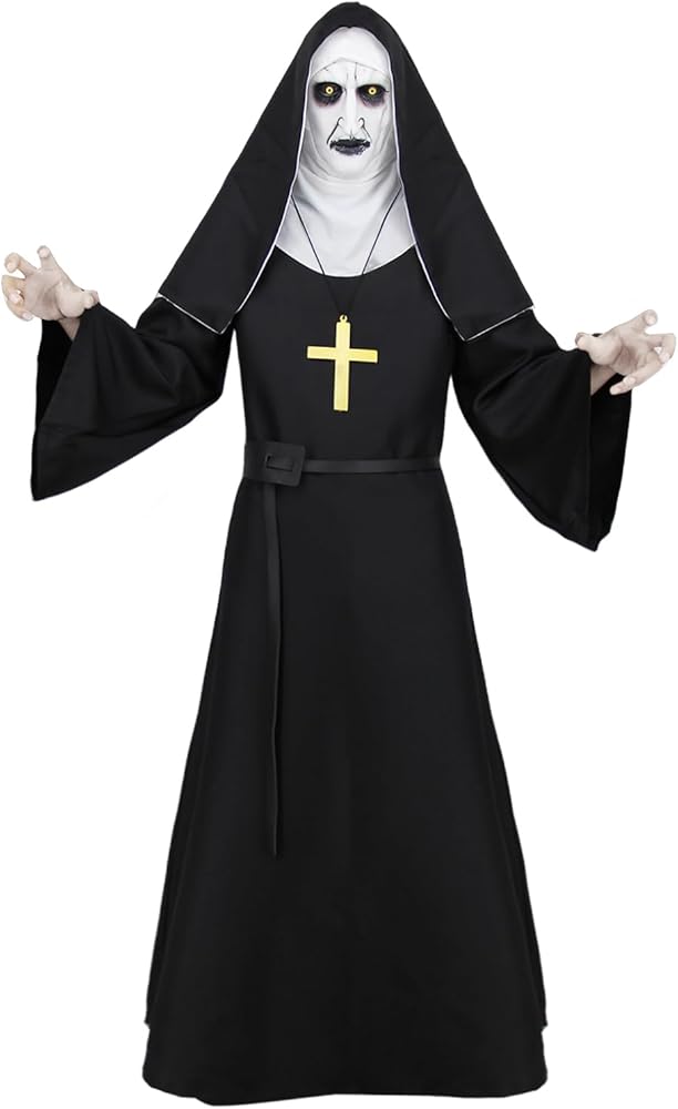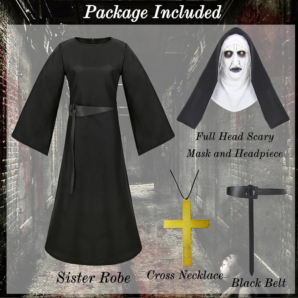 مجموعة الملحقات الكاملة: يشتمل زي الراهبة الخاص بنا على رداء ووشاح للرأس وقلادة وقناع لاتكس كامل الرأس وحزام، مما يضمن مظهرًا أصيلًا ومذهلًا
