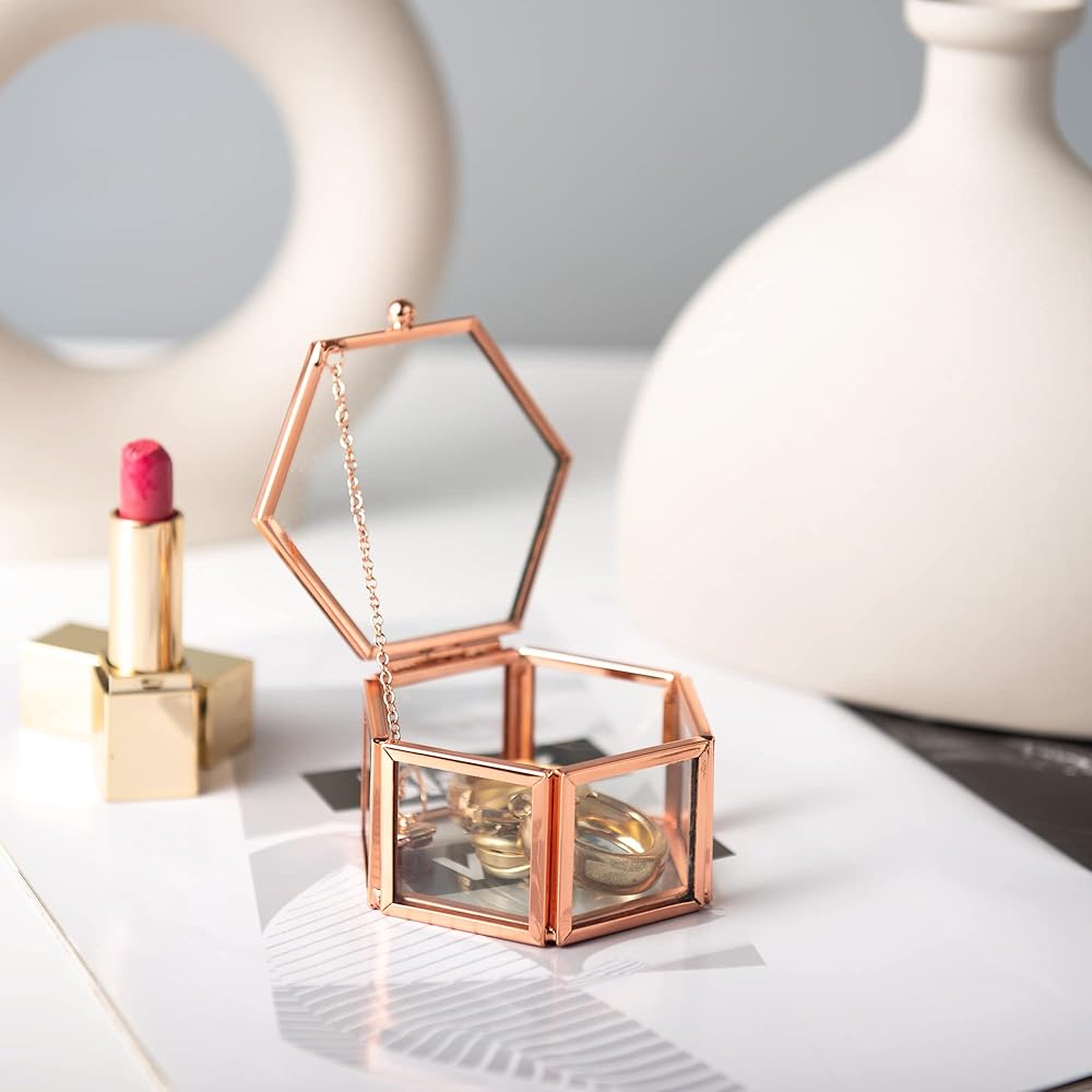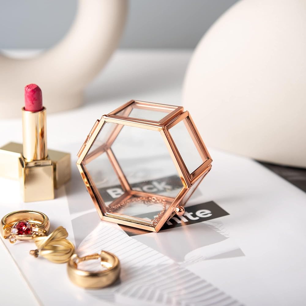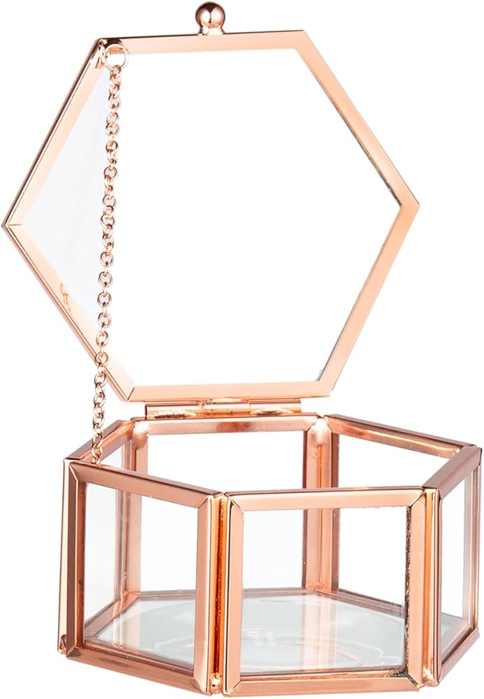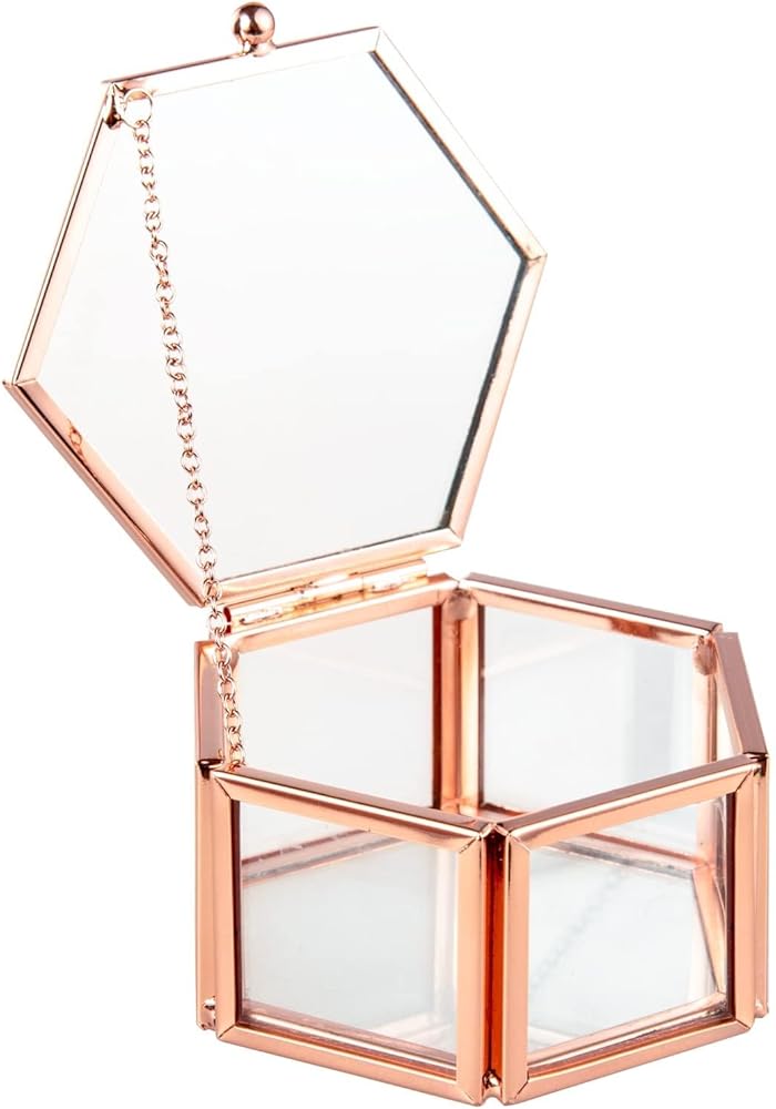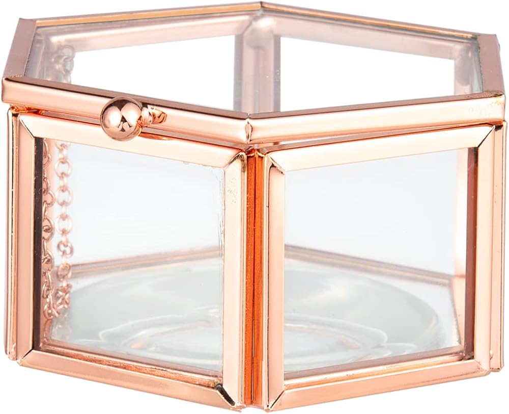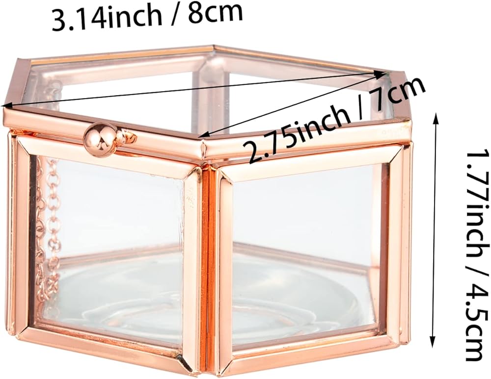 صندوق زجاجي عتيق رائع: صندوق زجاجي شفاف على شكل سداسي مزخرف. لون أسود عتيق، قطعة ديكور أنيقة ستجذب انتباه الجميع.