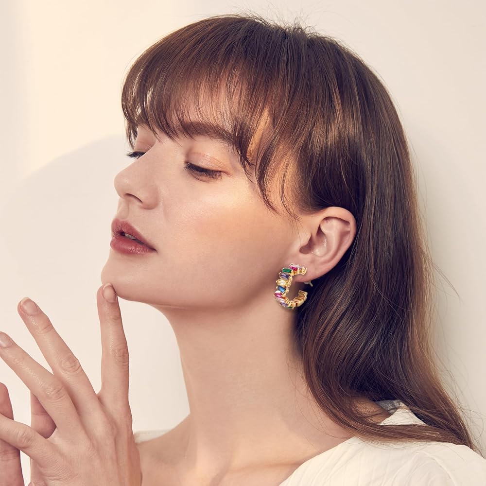 Hoop earrings are all made of selected brass, with an advanced electroplating process of plated white gold on the surface, nickel-free and lead-free hypoallergenic hoop earrings for women's sensitive ears