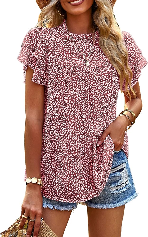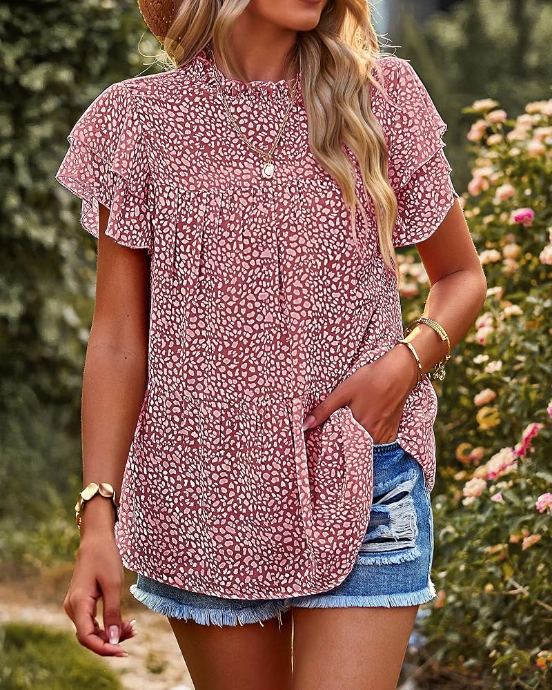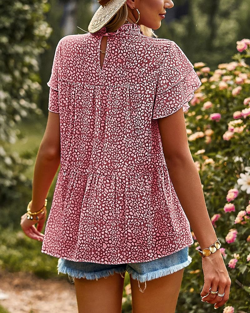 • تصميم أنيق: بلايز قصيرة الأكمام للنساء/تي شيرتات مطبوعة بالأزهار للنساء/بلوزة برقبة وهمية للنساء/بلايز متدرجة للنساء/بلوزة شيفون مكشكشة للنساء/بلايز بوهو للنساء/قمصان بفتحة مفتاح للنساء/قمصان فضفاضة للنساء قمصان عصرية/صيفية للنساء/بلوزة عصرية للنساء أنيقة