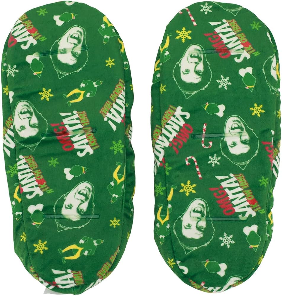 سحر فيلم Elf ذو الوجهين: استمتع بمتعة فيلم Elf على مدار العام مع جواربنا ذات الوجهين. يتميز أحد الجانبين بفراء صناعي أخضر غني وشعار فيلم Elf مطرز، بينما يتميز الجانب الآخر باللون الأخضر العميق مع طباعة متكررة بالكامل لـ Buddy the Elf واقتباسه الأيقوني، "OMG Santa! أنا أعرفه!"