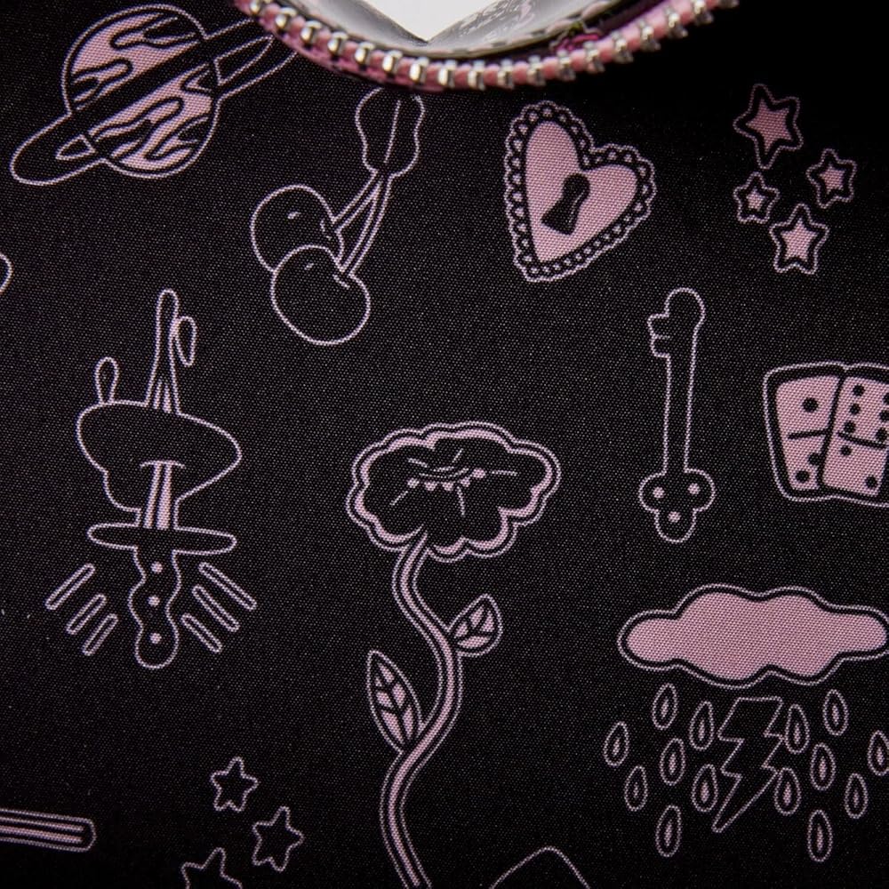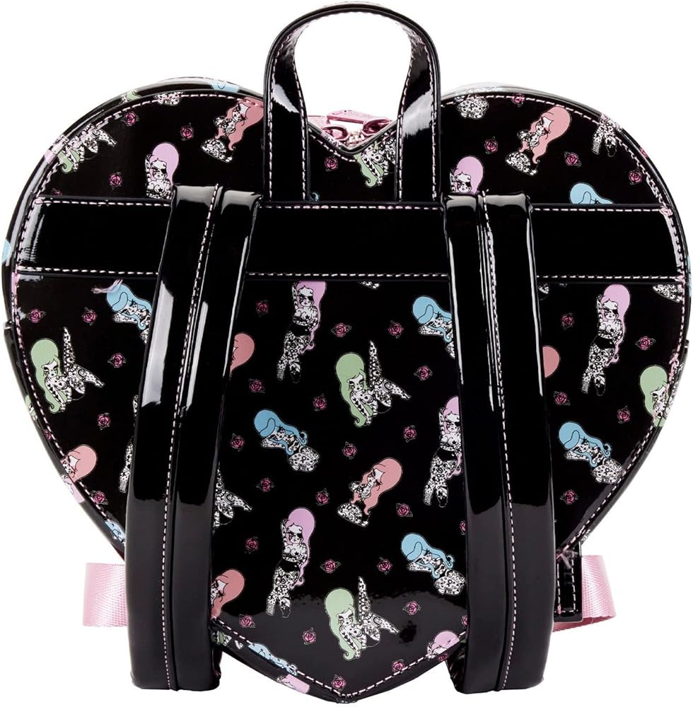الميزات: طباعة بالكامل. إغلاق بسحاب. أحزمة سوداء. شكل قلب. 1 جيب أمامي. 1 جيب رئيسي