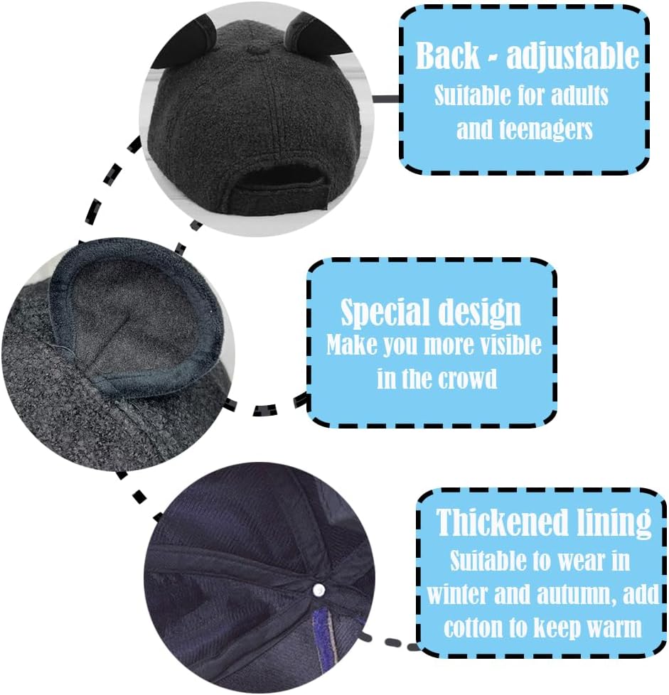 ❄️【What You Get: 】You Will Receive 1pcs Black Mouse Baseball Cap With Ear, Good Quality And Sturdy, The Big Mouse Ears Can Stand Up Good! Head Circumference Is About 50-60cm/19.7-23.6 Inch