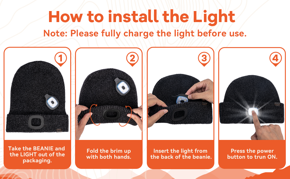 الضوء والبطارية: قبعة LED الخاصة بنا هي حل إضاءة قابل لإعادة الشحن ومحمول. يمكن شحنه بالكامل خلال ساعتين باستخدام أي منفذ USB وهو متوافق مع الكمبيوتر المحمول والمحول وشريط الطاقة وبنك الطاقة ومصادر الطاقة الخارجية. بضغطة زر، يتم تشغيل الضوء، مما يلغي الحاجة إلى البطاريات. إنه صغير الحجم وسهل الحمل، مما يضمن حصولك دائمًا على الضوء عندما تحتاج إليه.