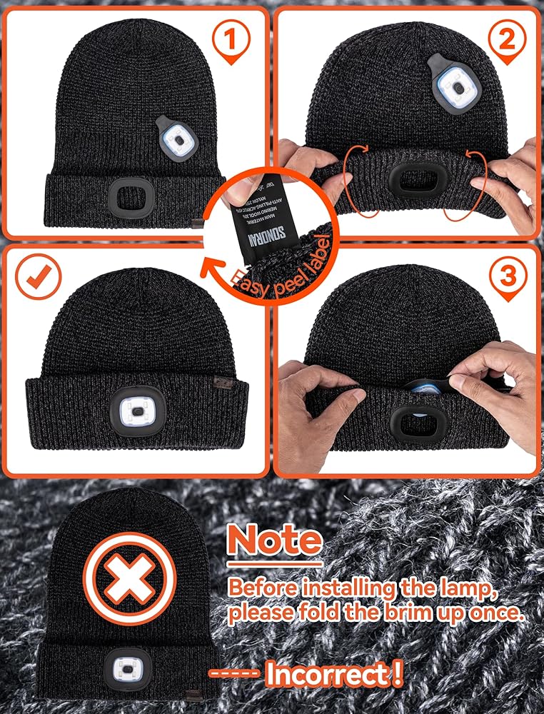 كهدية: قبعة صغيرة مضيئة للجنسين من سونوران، معبأة في صندوق هدايا فريد على شكل درج، وهي خيار ممتاز للهدايا. إنها مريحة ودافئة وقابلة للغسل وتتميز بإضاءة بدون استخدام اليدين. مثالي للمناسبات مثل الهالوين والكريسماس وأعياد الميلاد، فهو هدية مثالية لعائلتك وأحبائك.