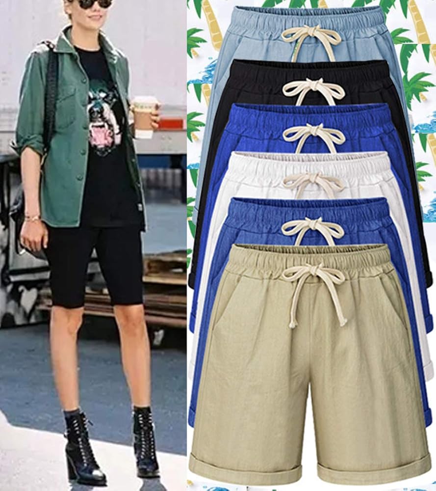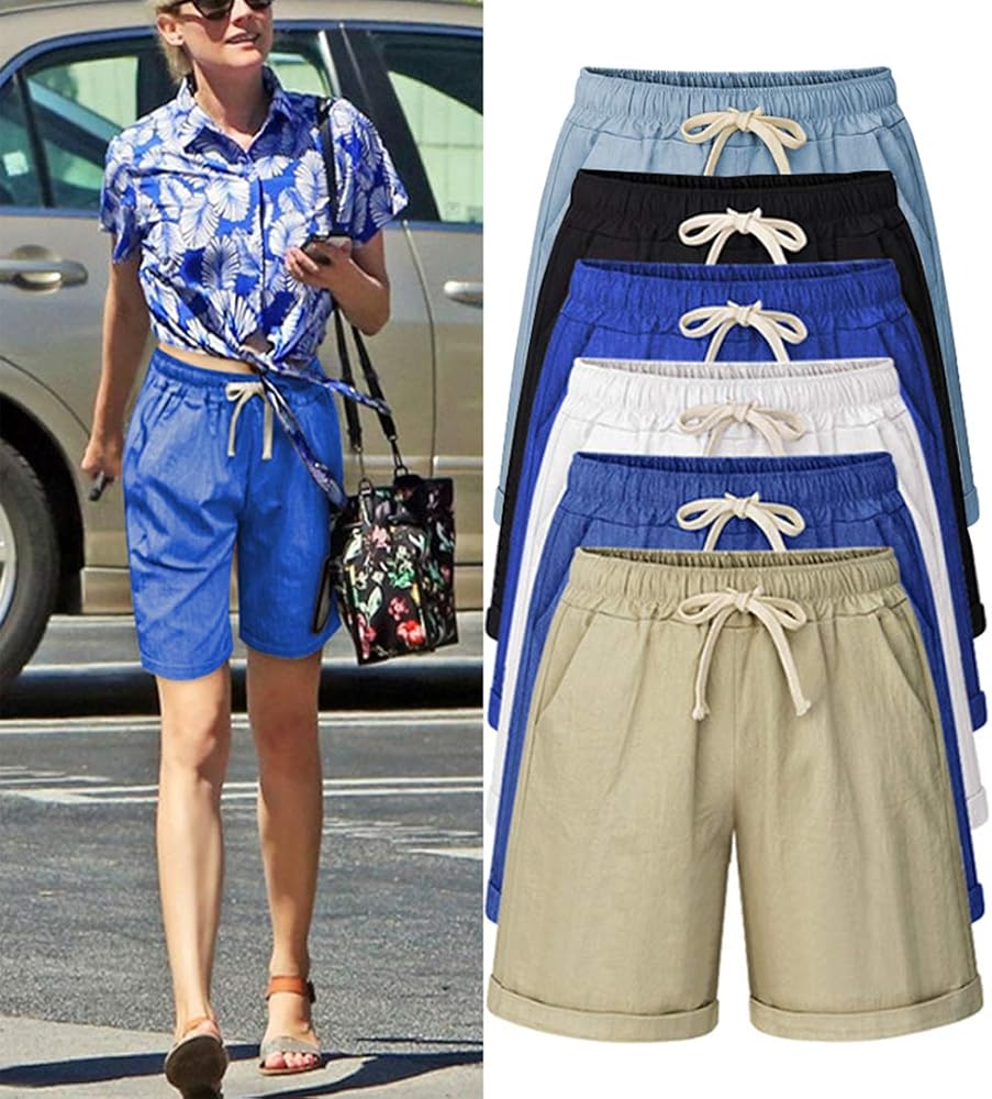 • شورت نسائي كاجوال من الكتان شورت صيفي للشاطئ: شورت برمودا، شورت قطني طويل، شورت برباط، شورت مطاطي، شورت خصر مرن، شورت كاكي، شورت مطاطي، شورت جولف، نسيج مريح عالي الجودة يبقى ناعمًا ومريحًا طوال اليوم. مثالي للربيع أو الصيف، ويمكن غسله في الغسالة.