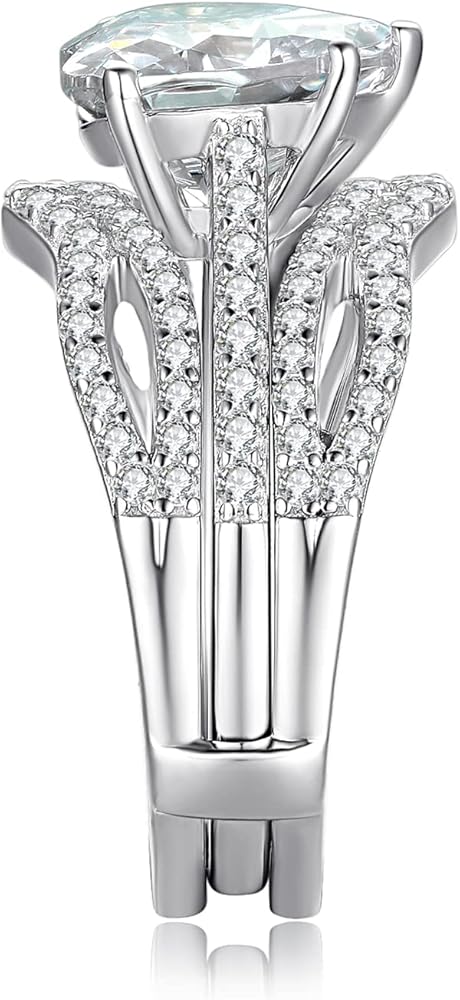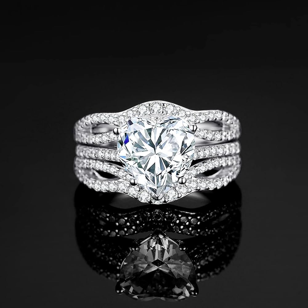√ مجموعة خواتم من الفضة الإسترلينية عيار 925 مكعبة AAA عالية الجودة بحجم 3 قيراط على شكل قلب: خاتم للنساء مصنوع من الفضة الإسترلينية S925 الصلبة المعروفة بين مرتدي المجوهرات بقوتها وسطوعها ولمعانها. الفضة الإسترلينية في أساور الزفاف لدينا مقاومة للتشوه مما يضمن وجودها لا يوجد بقايا تشويه على الجلد. يوفر طلاء الروديوم بريقًا يدوم طويلاً ويجعل Anillos de Plata 925 للنساء مقاومًا للتشوه! خالية تمامًا من الحساسية وخالية من النيكل والرصاص والكادميوم للوقاية