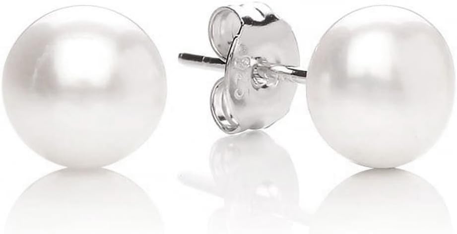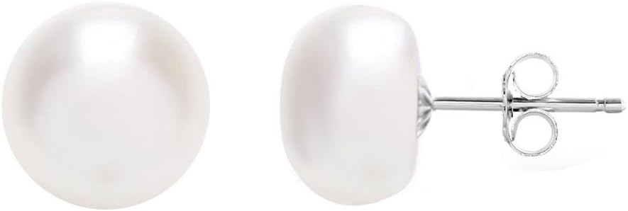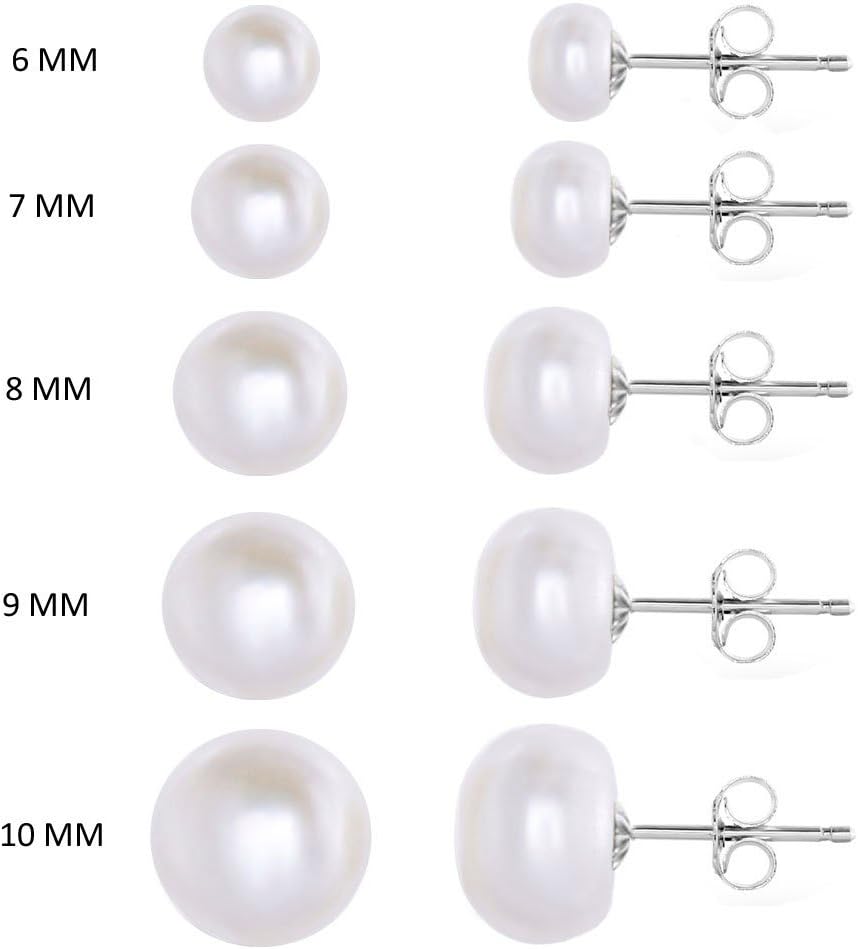 تصميم من الفضة الاسترلينية الصلبة عيار 925 ولؤلؤ المياه العذبة الطبيعي الحقيقي المنتقاة يدويًا بجودة ايه ايه ايه بلون أبيض وأزرار دائرية
