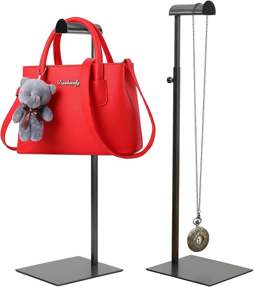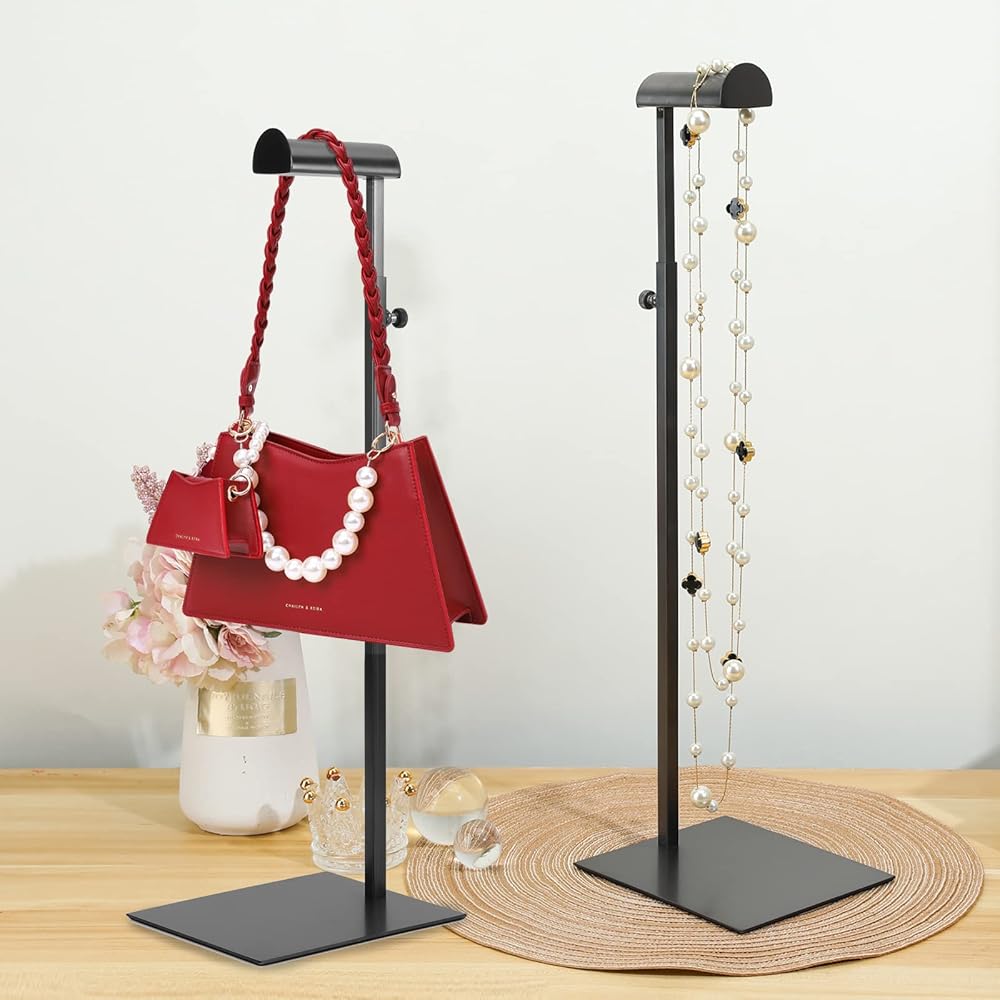 WFENFZS 2 قطعة حامل عرض المحفظة حامل المحفظة السوداء لعرض حقيبة اليد حامل حقيبة المرأة مع ارتفاع قابل للتعديل
