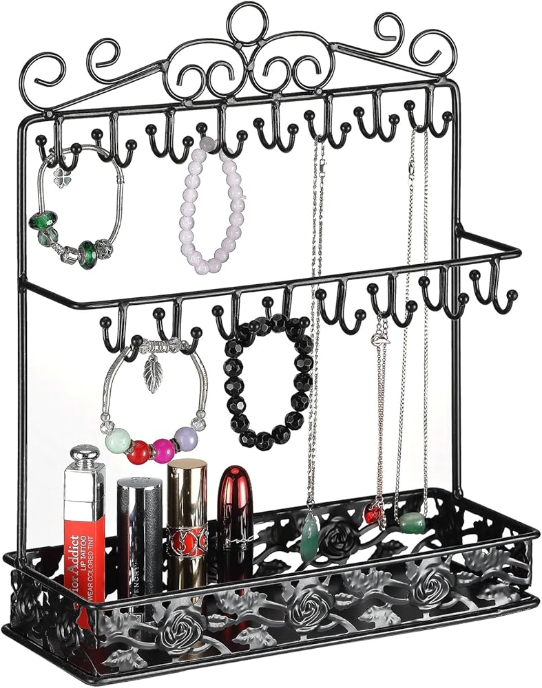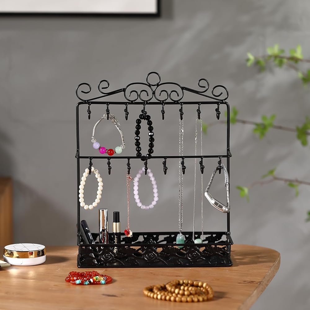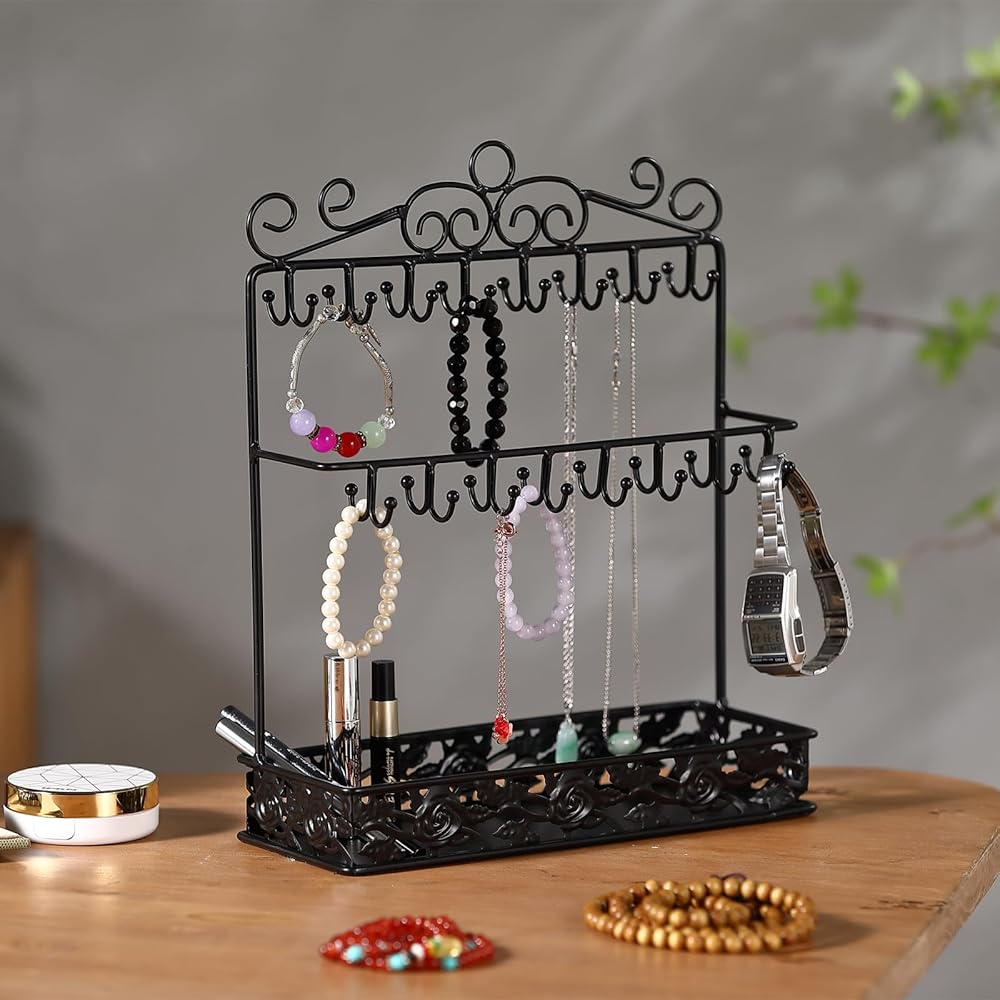 【حامل مجوهرات من مادة فاخرة】حامل منظم المجوهرات الخاص بنا مصنوع من معدن قوي، والهيكل بأكمله ثابت وقوي.