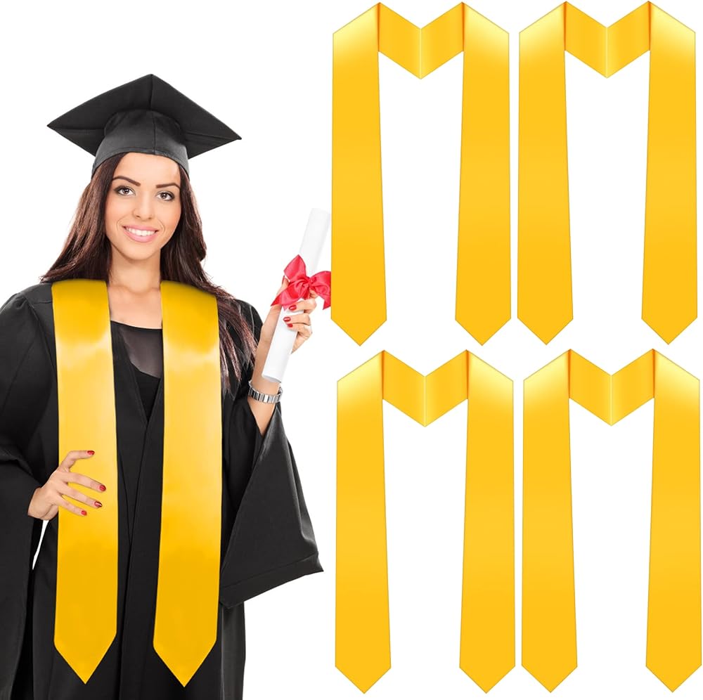 4 قطع من شالات التخرج بطول 72 انش للجنسين وشاح التخرج سادة للتخرج 2023 المدرسة الثانوية وحفل البكالوريوس