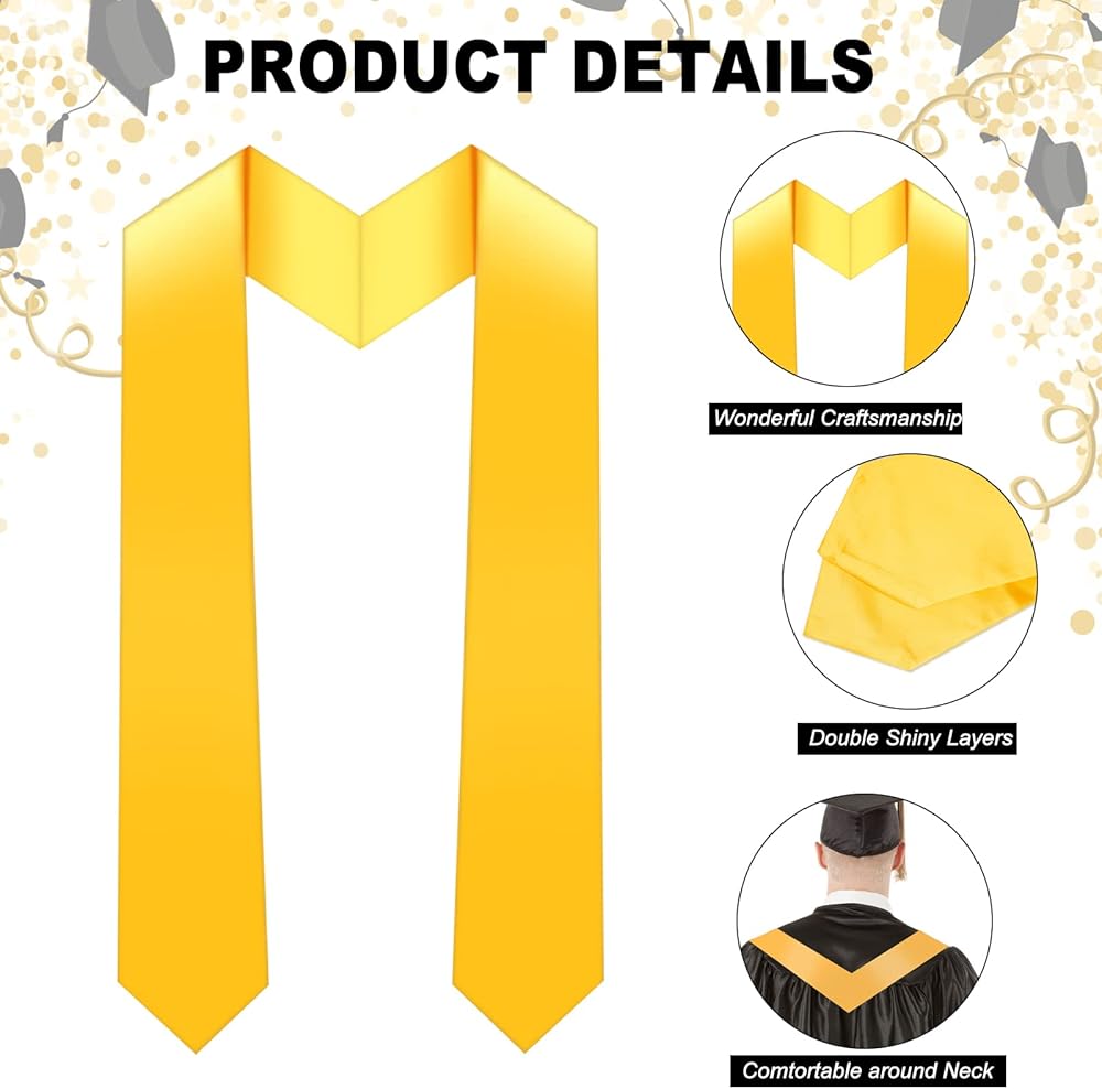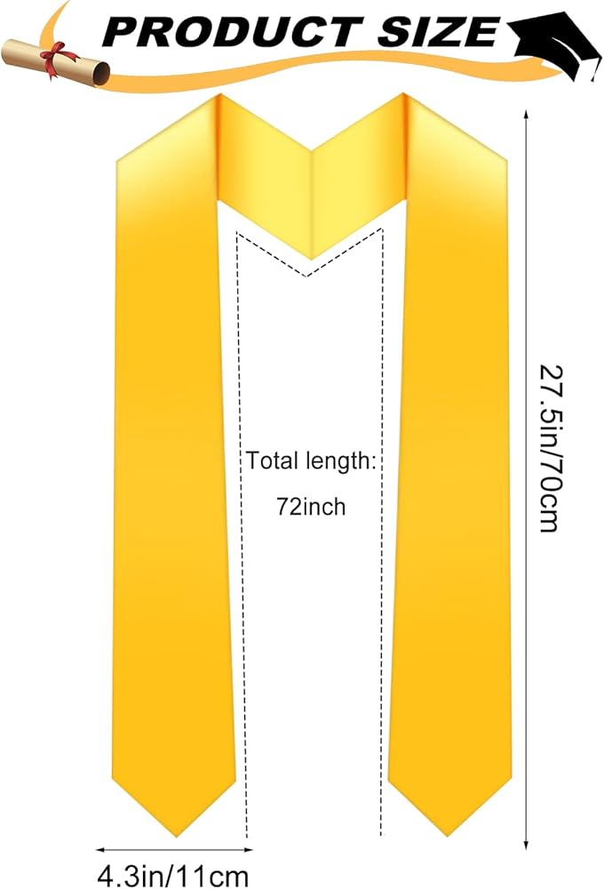 • المقاس - وشاح التخرج السادة بطول إجمالي 72 انش، مقاس مناسب لجميع البالغين والمراهقين. إنه ملحق تخرج مثالي لزي التخرج الخاص بك.