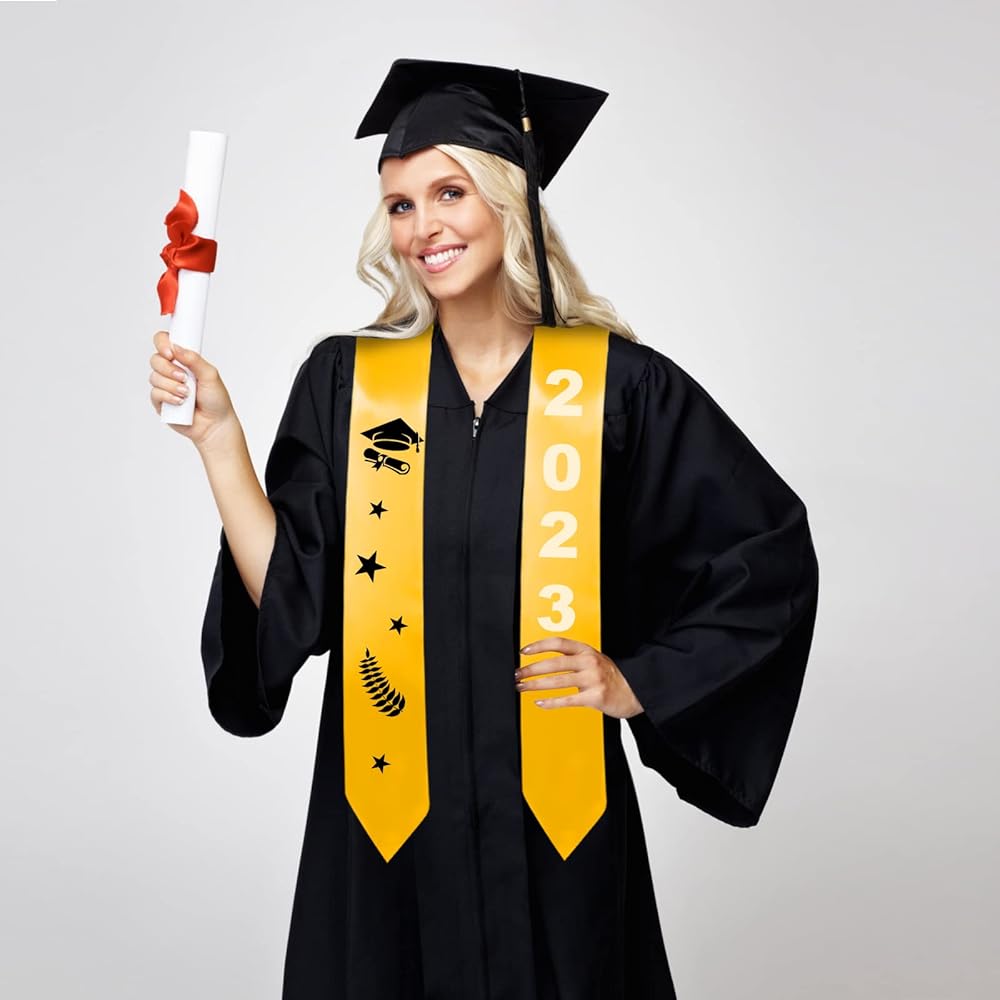 • هدايا التخرج - وشاح التخرج الذهبي لعام 2023 مناسب لمعظم فساتين التخرج، ويتوافق تمامًا مع حفلات التخرج من المدرسة الثانوية والتخرج الجامعي.