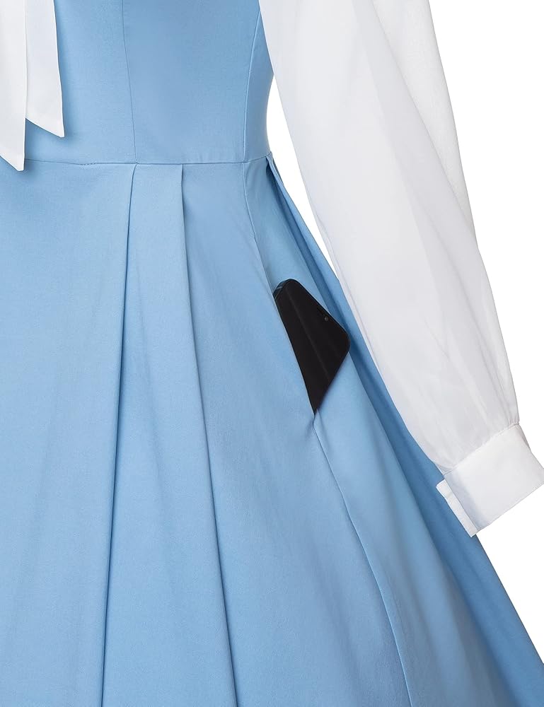 يتميز هذا الفستان بأكمام طويلة شفافة من الكريب وربطة عنق ذاتية الربط، وسحاب في الخلف وجيوب جانبية، واللمسات المطوية تبرز شخصيتك!