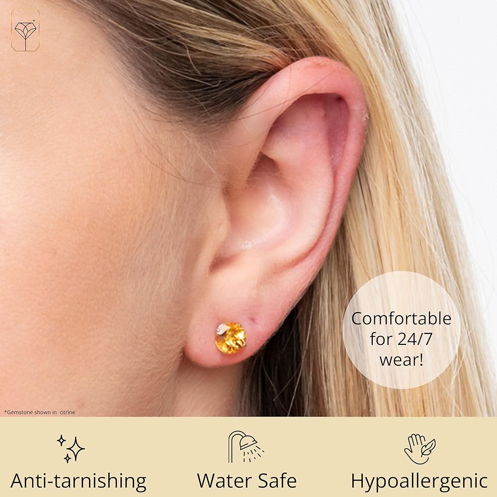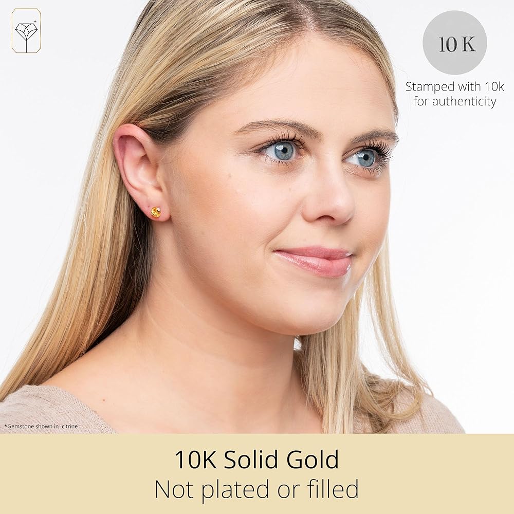 أقراط ذهبية عيار 10 قيراط - هذه الأقراط المرصعة بالأحجار الكريمة ذات القطع الدائري مقاس 6 مم مصنوعة من الذهب الأصفر الصلب عيار 10 قيراط. كل أقراط مختومة بـ "10K" لضمان الأصالة والجودة الاستثنائية.