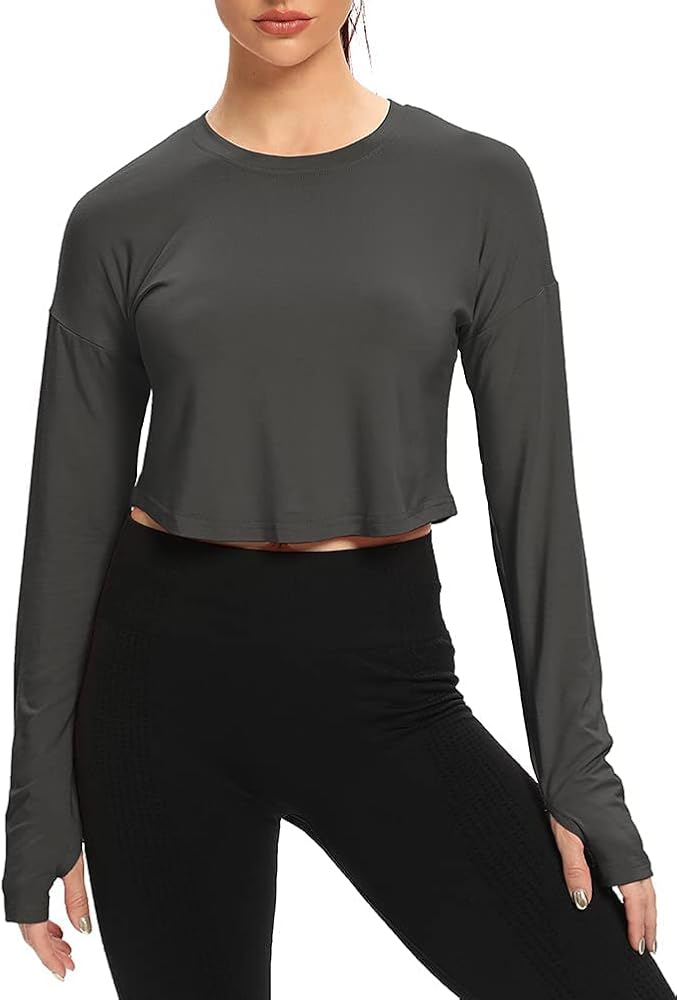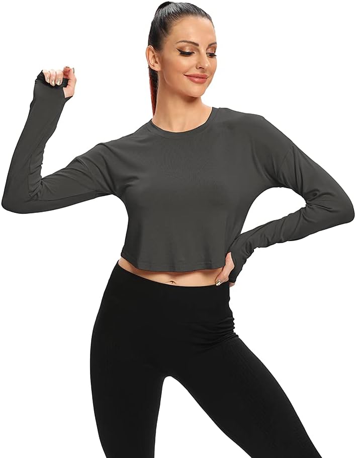 قمصان Mippo النسائية ذات الأكمام الطويلة للتمارين الرياضية مع فتحة للإبهام