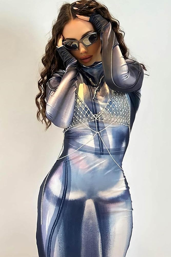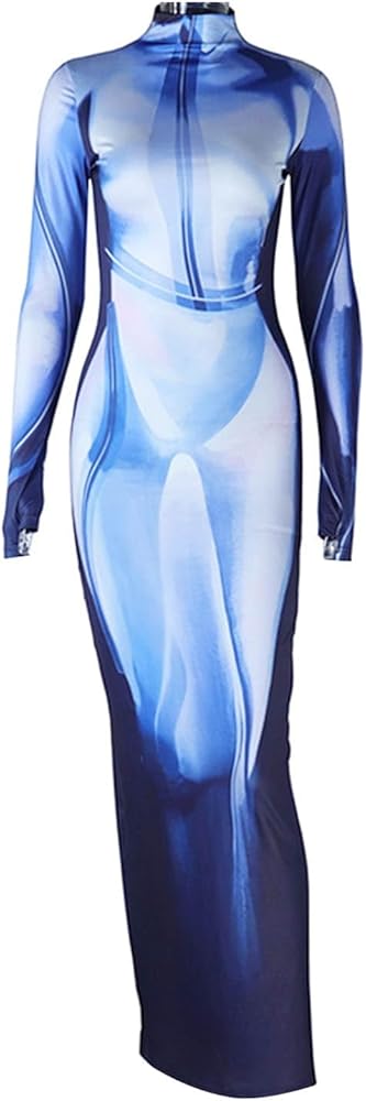 النمط: فستان ضيق بطبعة ثلاثية الأبعاد بأكمام طويلة للسيدات Y2K مثير وفريد من نوعه فساتين طويلة طويلة للحفلات والنوادي للبالغين والفتيات.