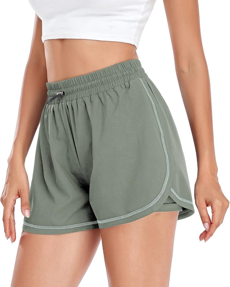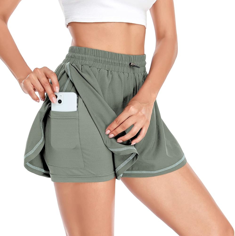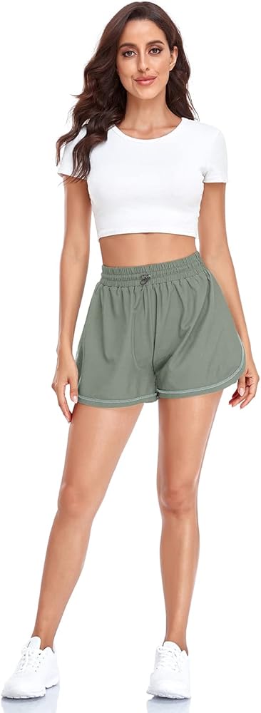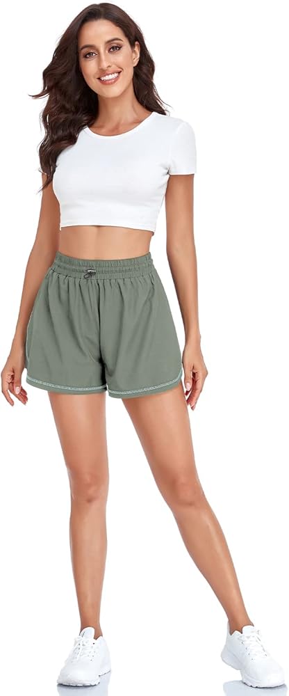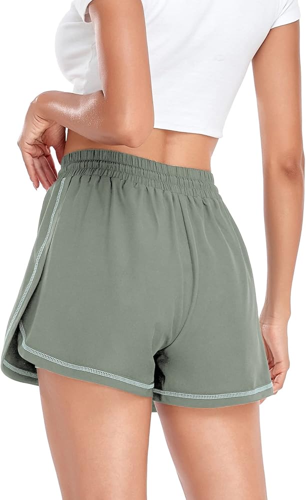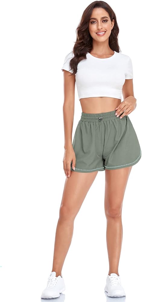 Husmeu شورت رياضي نسائي كاجوال صيفي للجري مع جيب عالي الخصر رياضي للصالة الرياضية والتمارين الرياضية